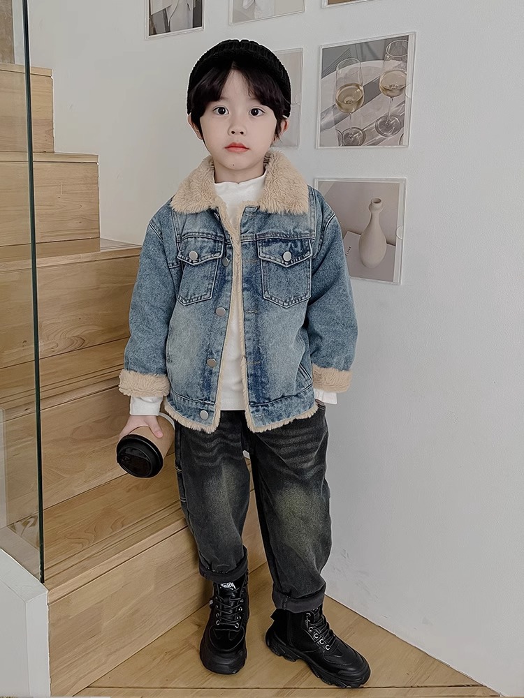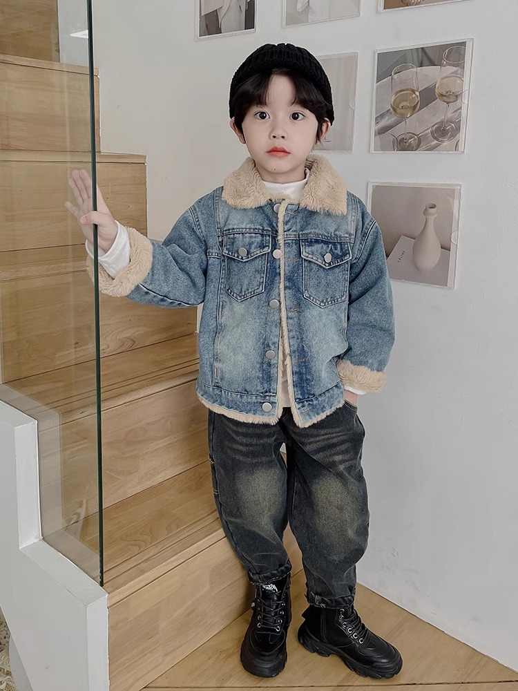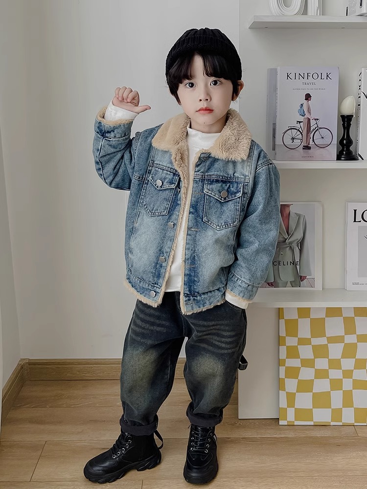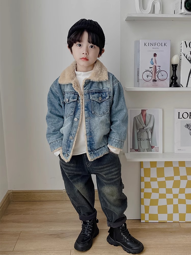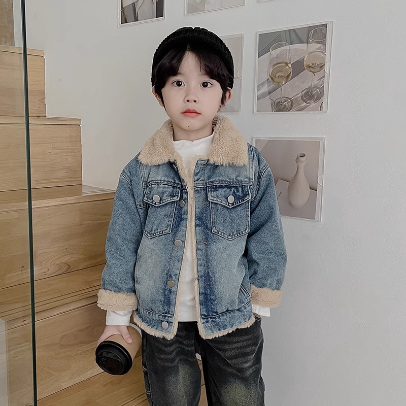 남아 데님 재킷 아동 가을 겨울 기모옷 2025 신상 아기 겨울 두꺼운 유아복 남아용스토어 가기