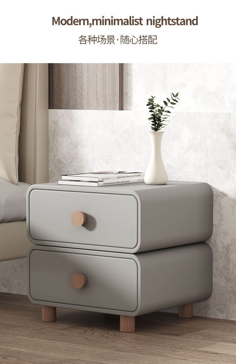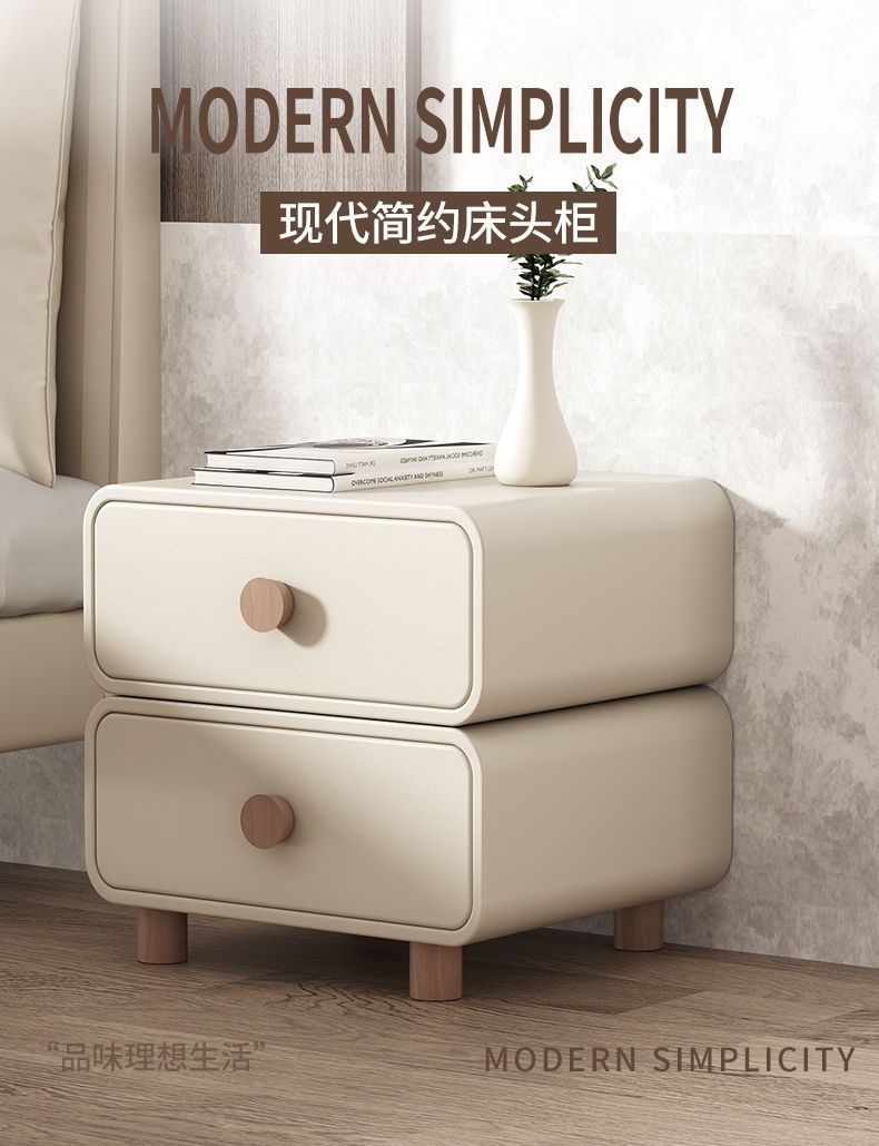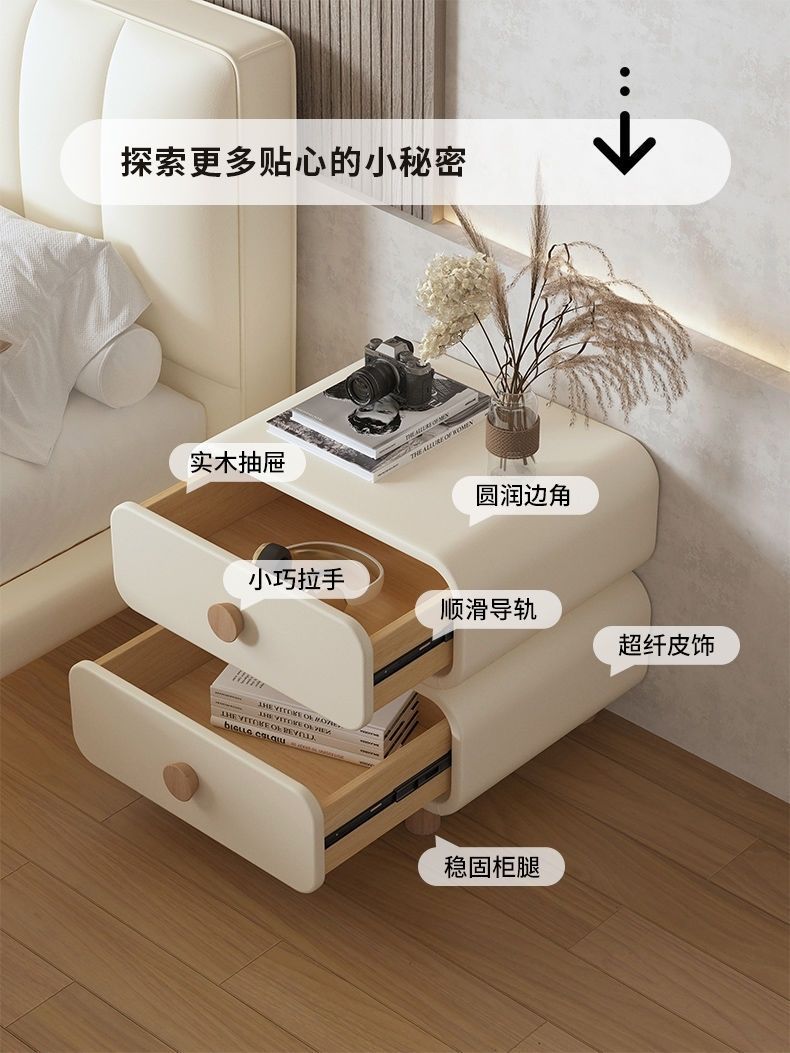 크림 침대 옆 테이블 현대 가정 간단한 단단한 나무 작은 내각 침실 미니멀리스트 침대 옆 저장 새로운 부드러운 가방