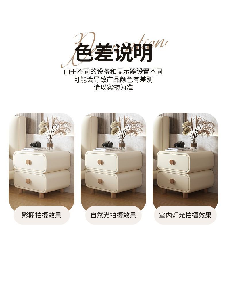 크림 침대 옆 테이블 현대 가정 간단한 단단한 나무 작은 내각 침실 미니멀리스트 침대 옆 저장 새로운 부드러운 가방스토어 가기