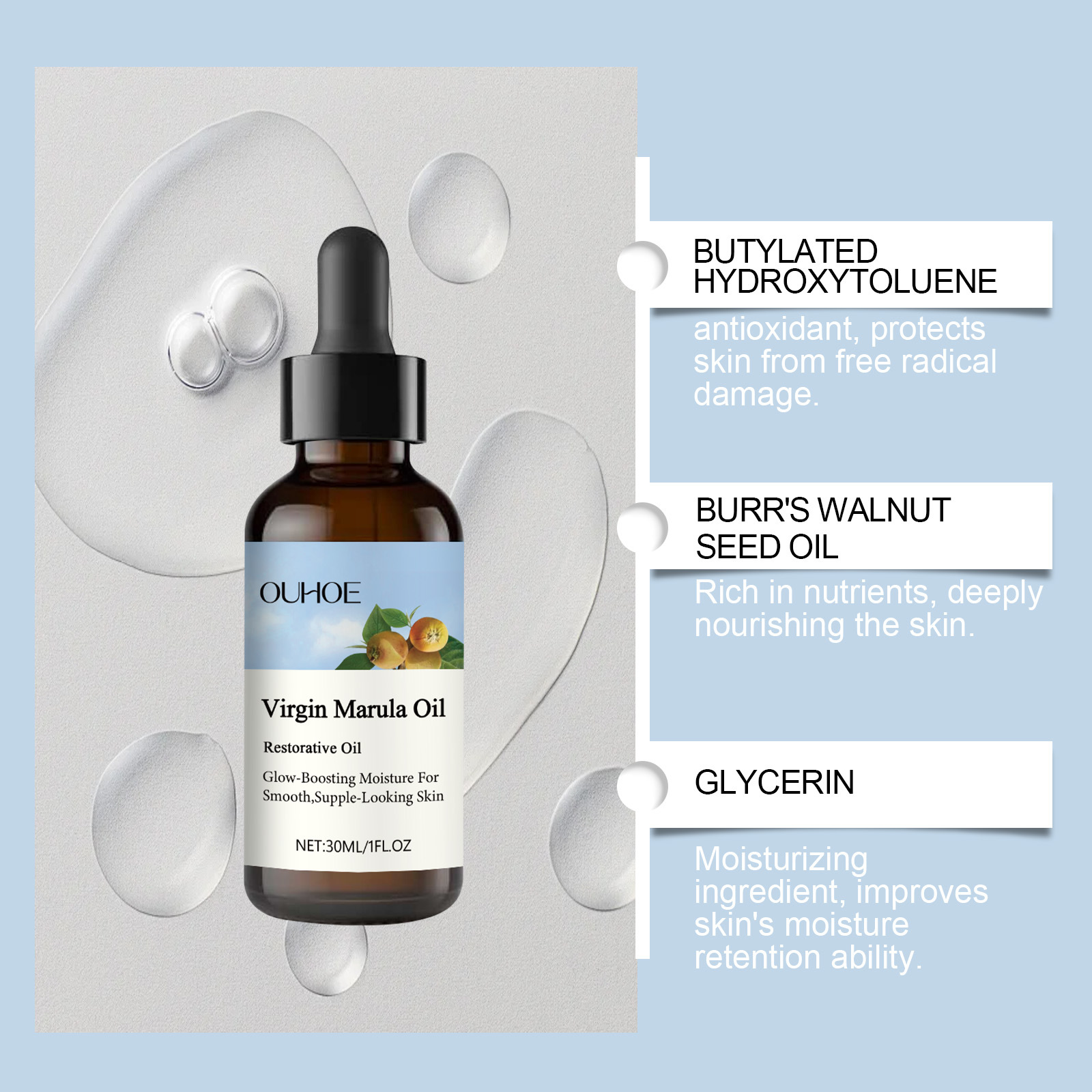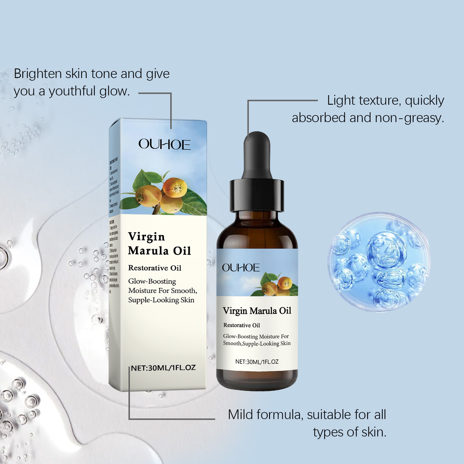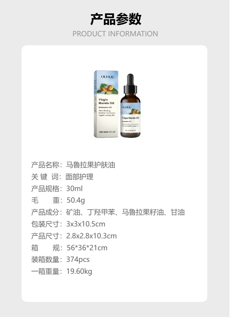 OUHOE Marulago 스킨 케어 오일 젠틀 케어 얼굴 수분 보습 얼굴 퍼밍 에센스 오일