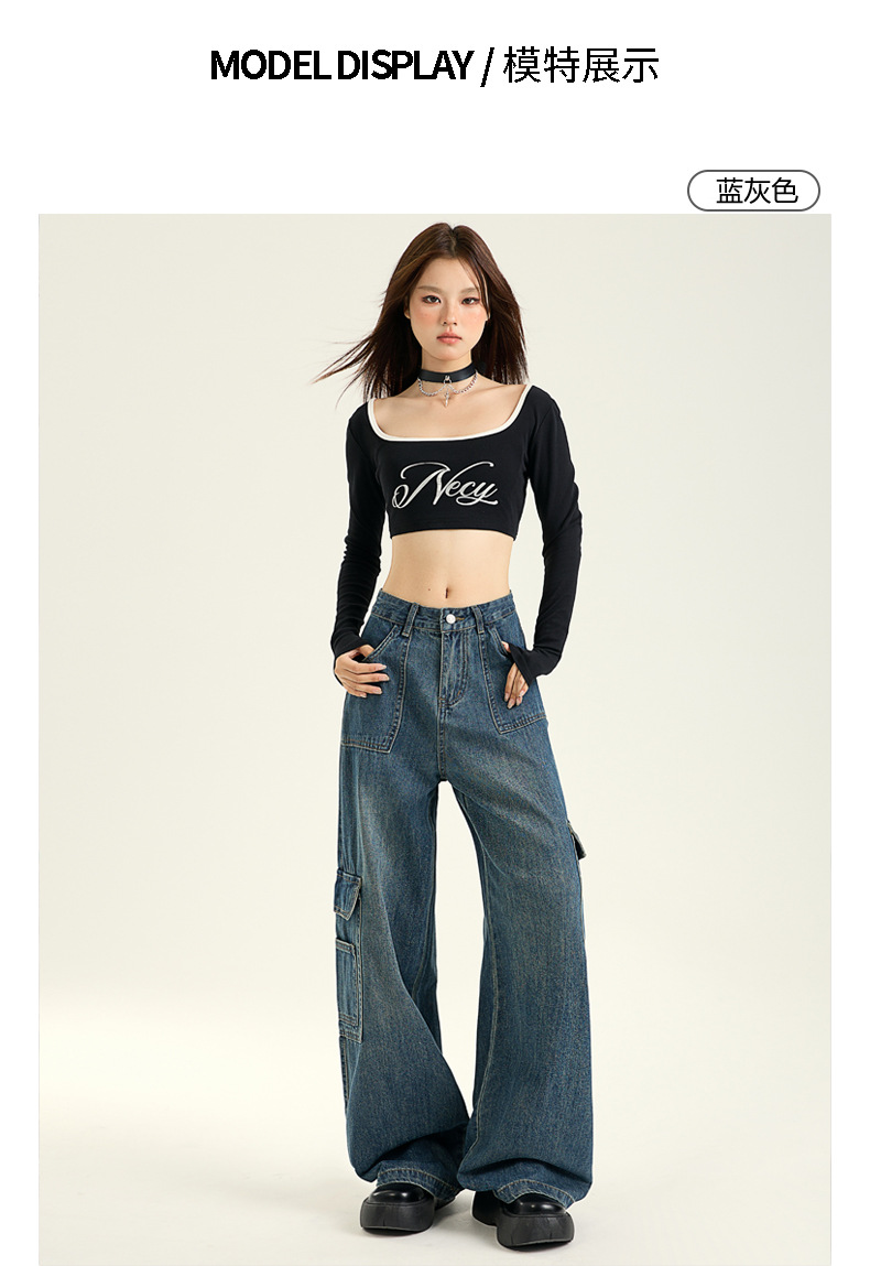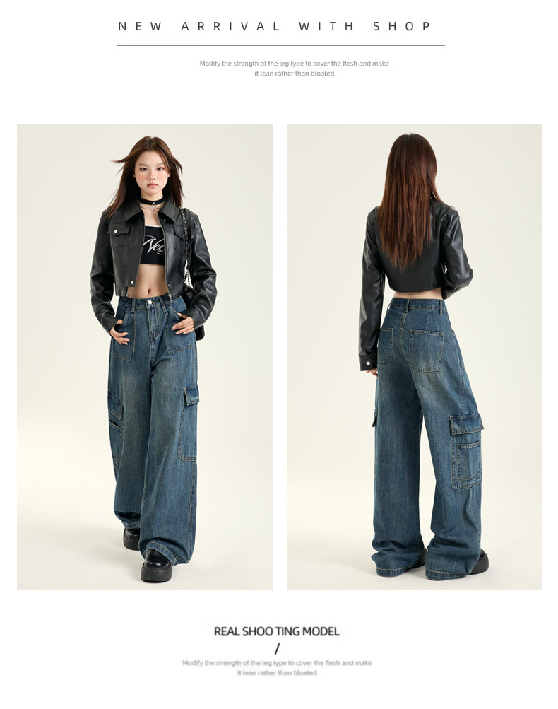 미국 레트로 스파이스 소녀 툴링 데님 여성의 2025 봄 새로운 높은 허리 슬리밍 디자인 센스 와이드 다리 바지스토어 가기