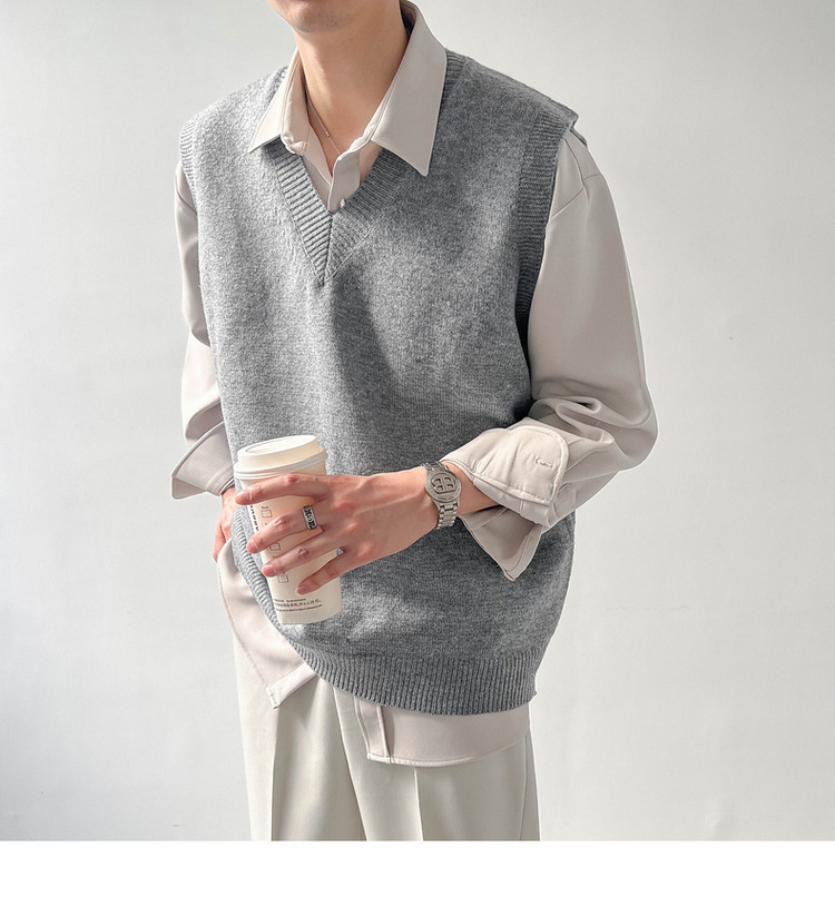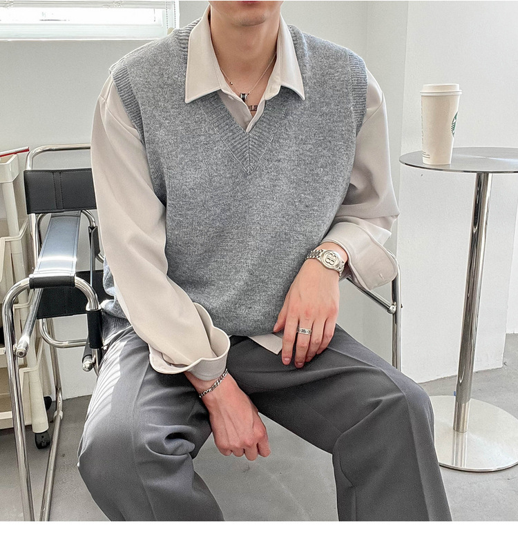 봄 가을과 겨울 한국 스타일 느슨한베이스 스웨터 민소매 조끼 남자 내부 탑 풀오버 V-넥 스웨터 조끼스토어 가기