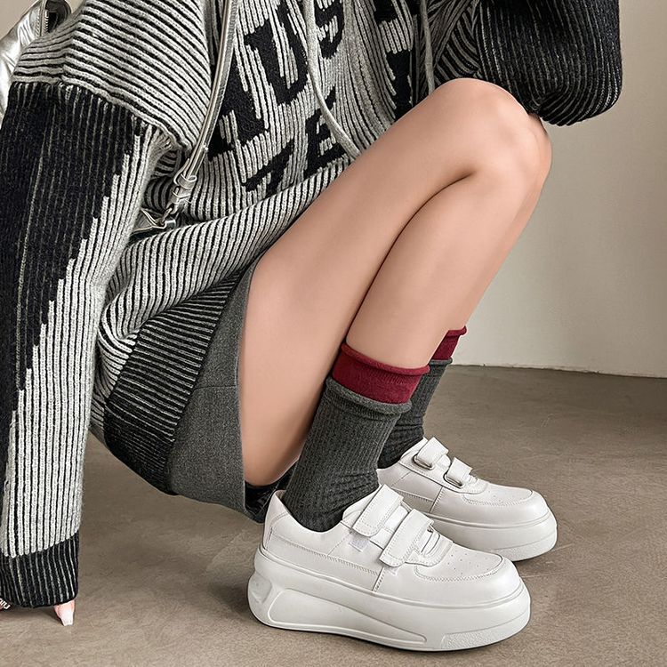 패션 플랫폼 하단 벨크로 캐주얼 화이트 신발 여성 두꺼운 단독 엘리베이터 보드 신발 클래식 솔리드 컬러 통기성 운동화