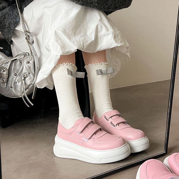 패션 플랫폼 하단 벨크로 캐주얼 화이트 신발 여성 두꺼운 단독 엘리베이터 보드 신발 클래식 솔리드 컬러 통기성 운동화스토어 가기