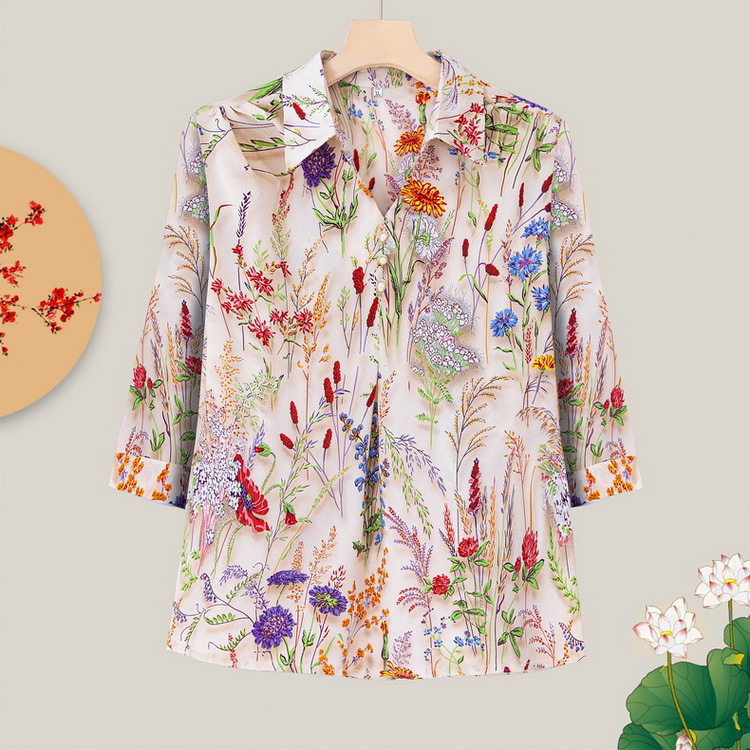 꽃 쉬폰 셔츠 여성의 여름 새로운 도착 느슨한 플러스 사이즈 슬림 한 나이를 줄이는 서양 스타일 예쁜 세련된 작은 셔츠 탑