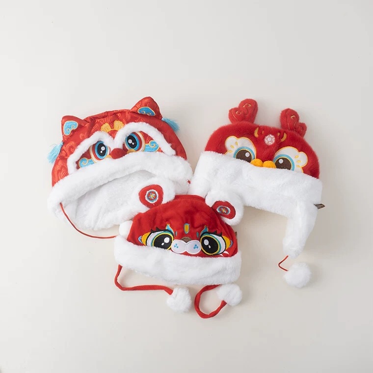 아기 모자 빨간 호랑이 모자 겨울 두꺼운 따뜻한 풀오버 레이 펑 모자 아기 축제 새해 모자스토어 가기