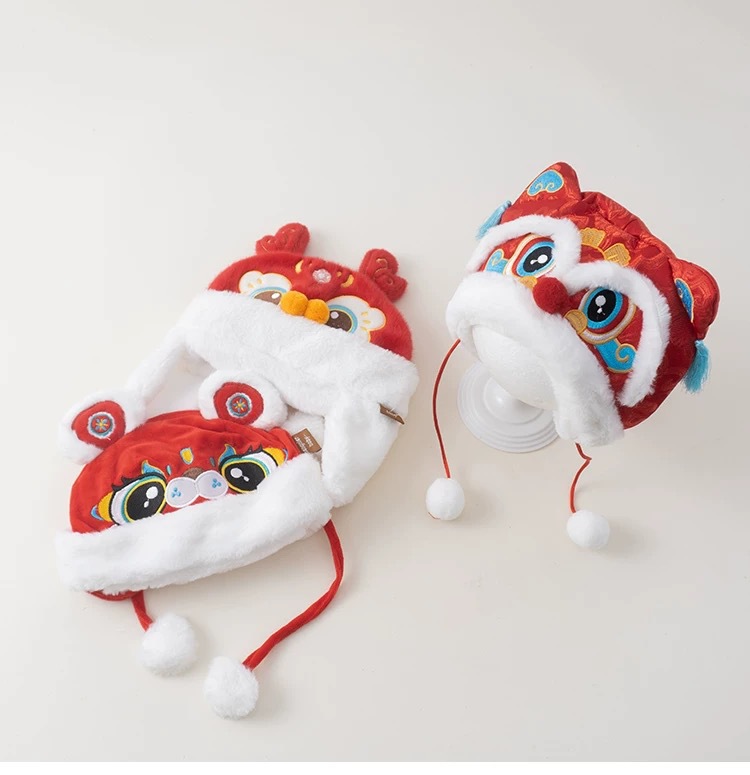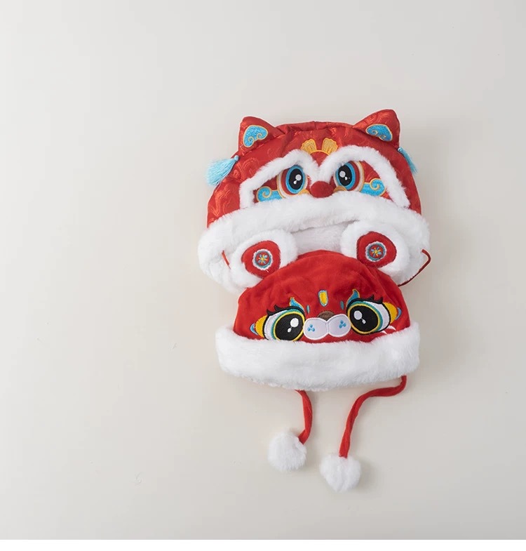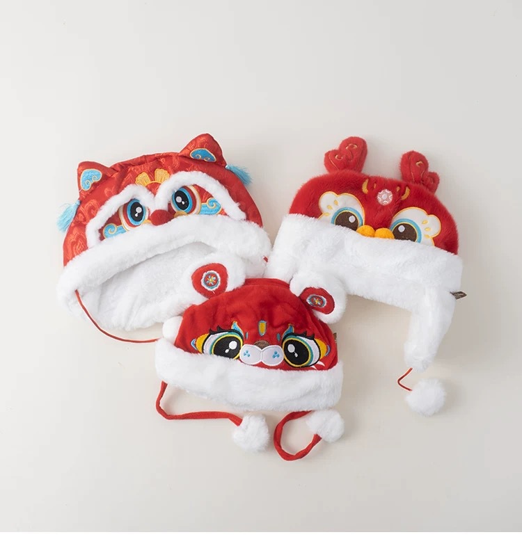 • 붉은 사자 호랑이 머리 모자