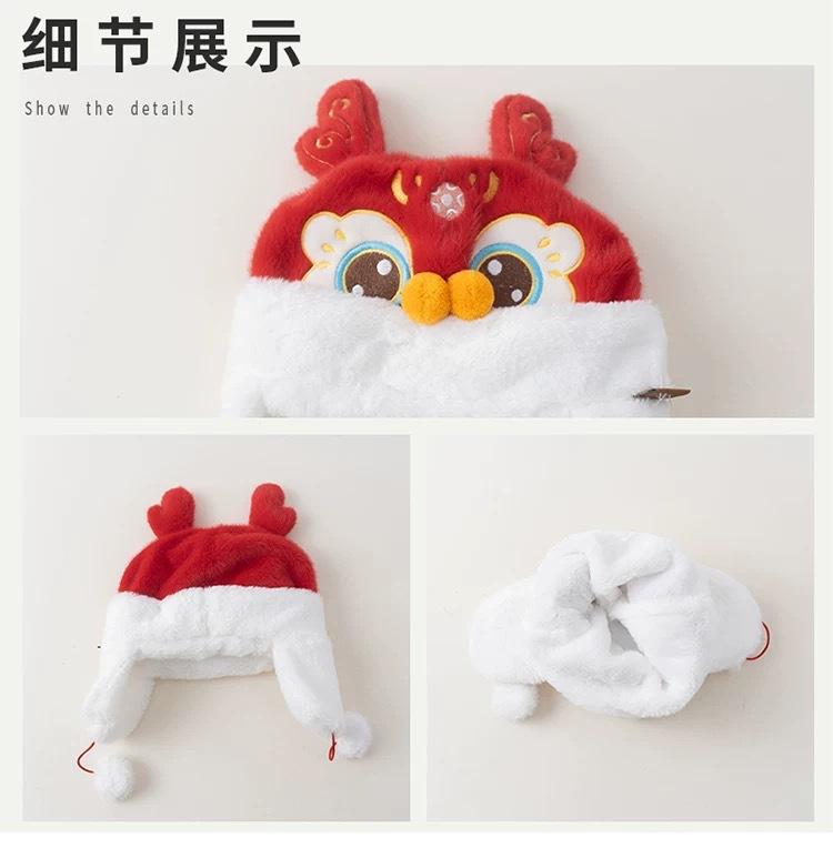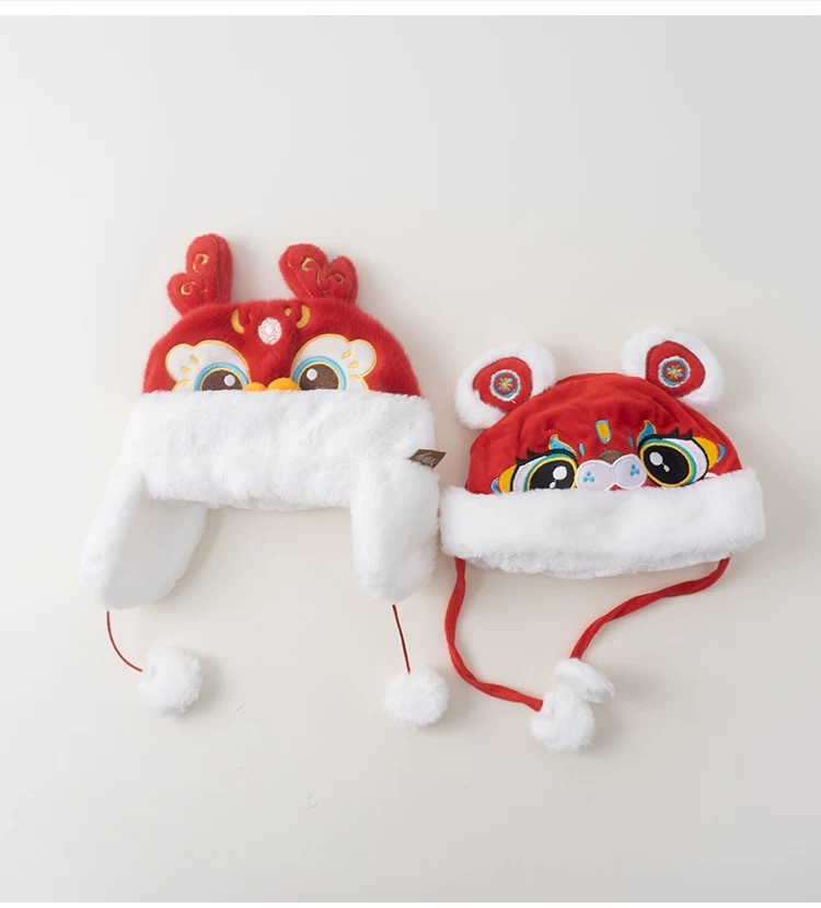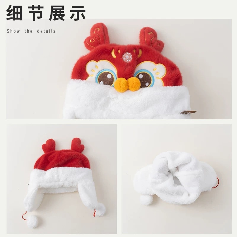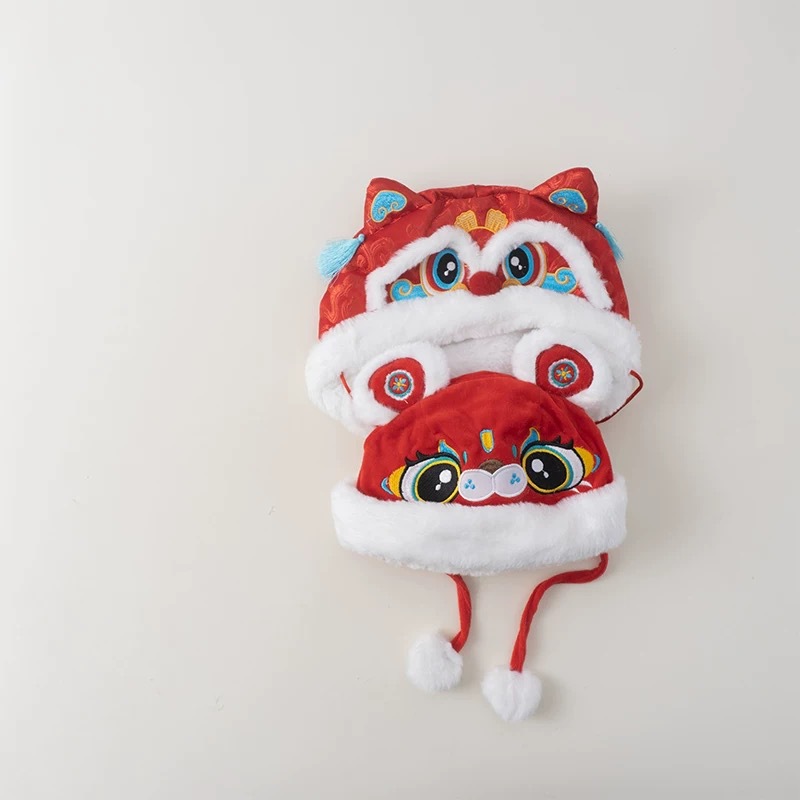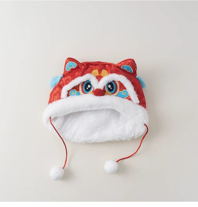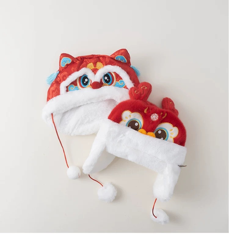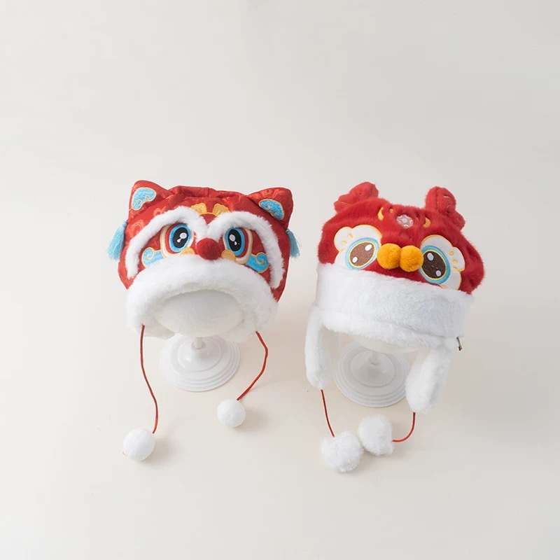 아기 모자 빨간 호랑이 모자 겨울 두꺼운 따뜻한 풀오버 레이 펑 모자 아기 축제 새해 모자