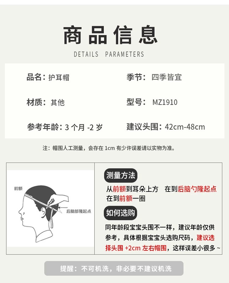• 모자 둘레 44-51cm, 참고 5개월-4세