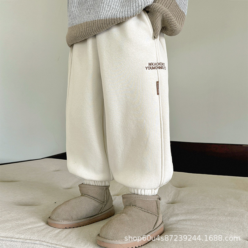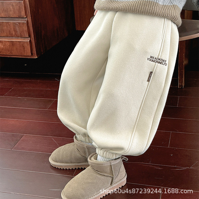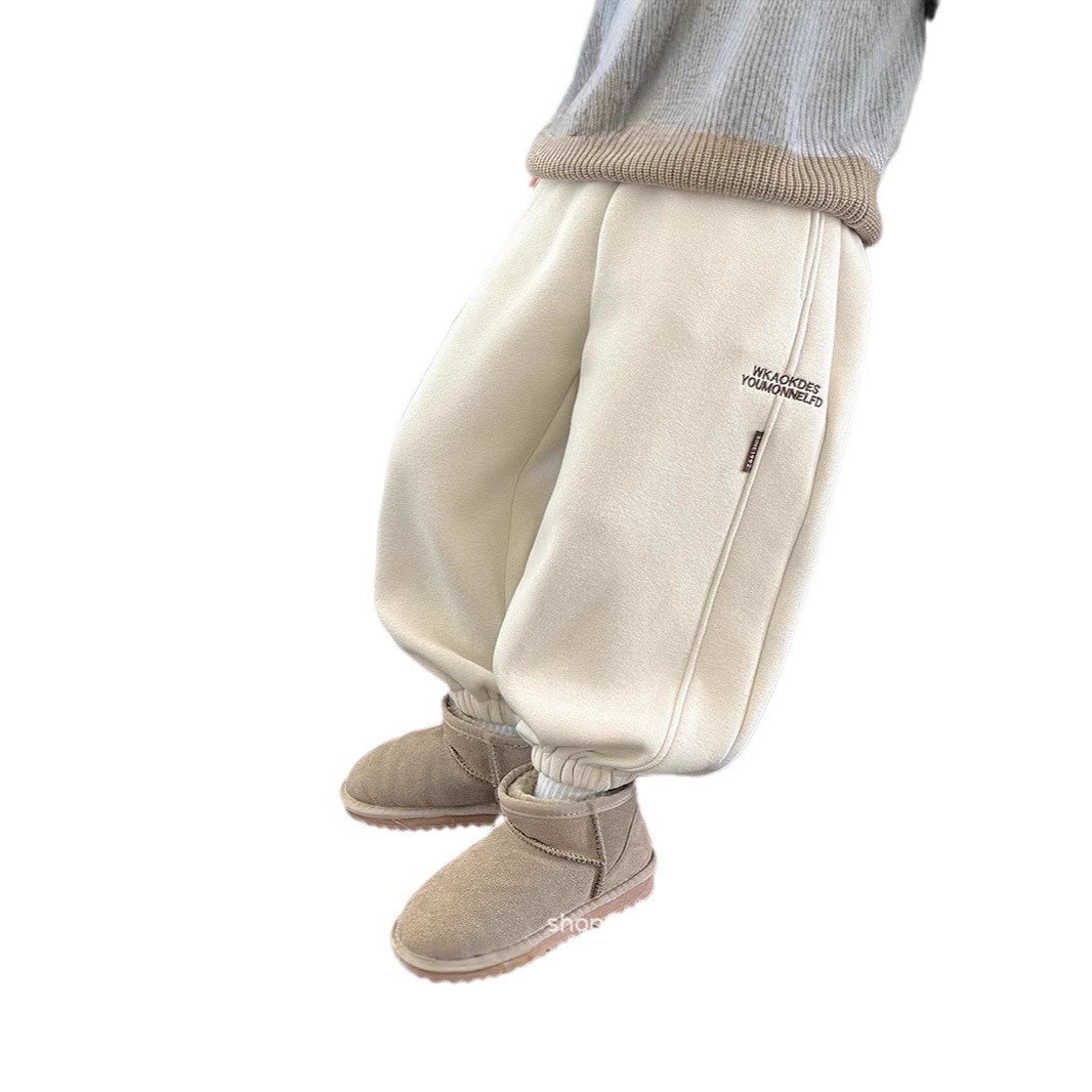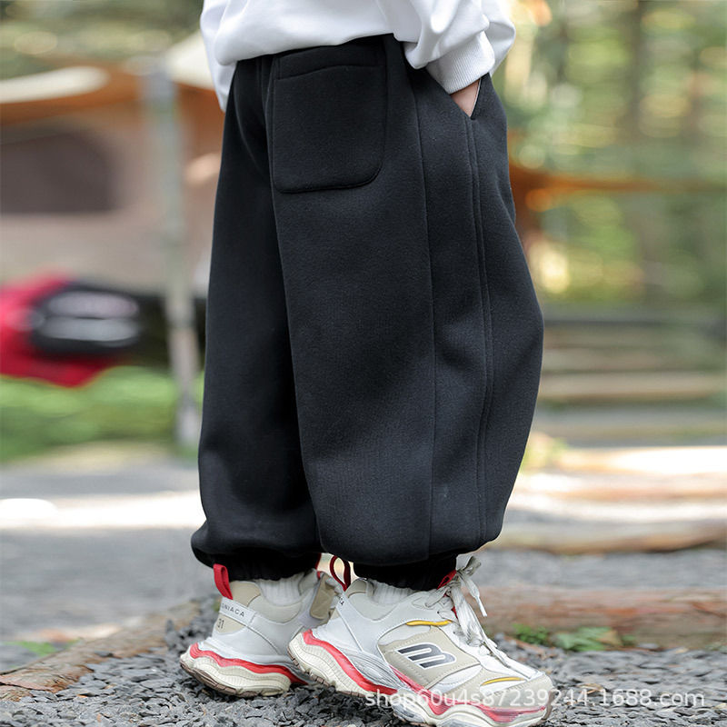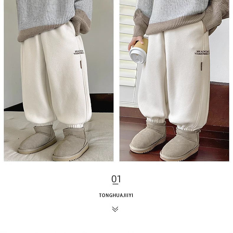 소년 바지 기모 두꺼운 2024 겨울 어린이 한국식 루즈 스포츠 캐주얼 원피스 벨벳 바지 바지스토어 가기