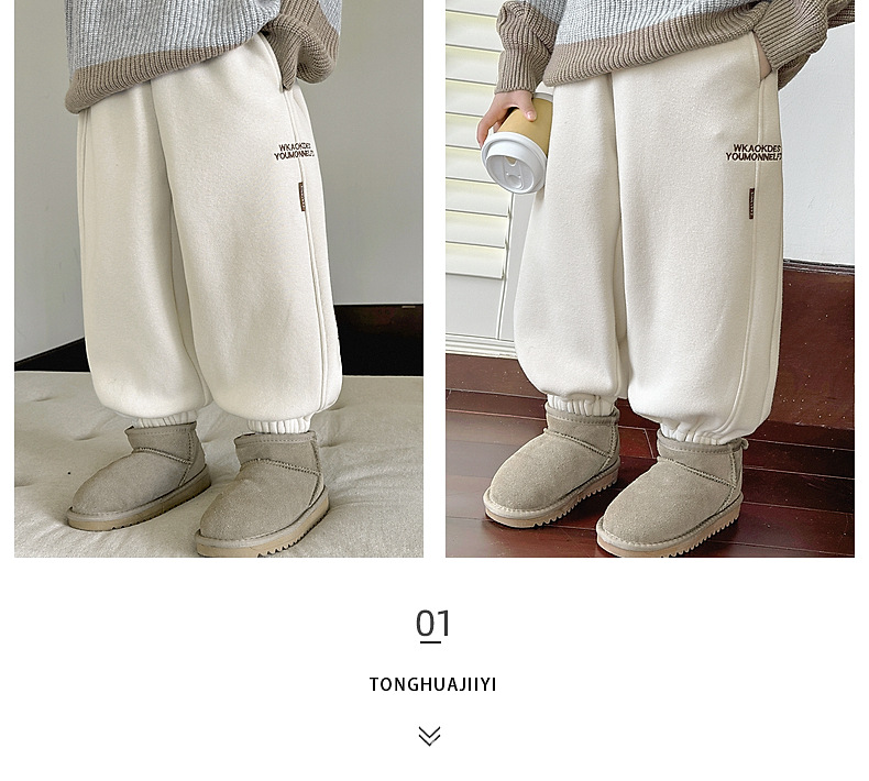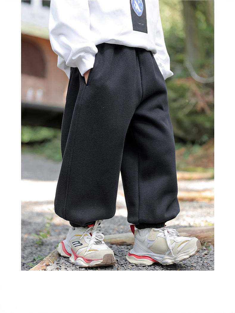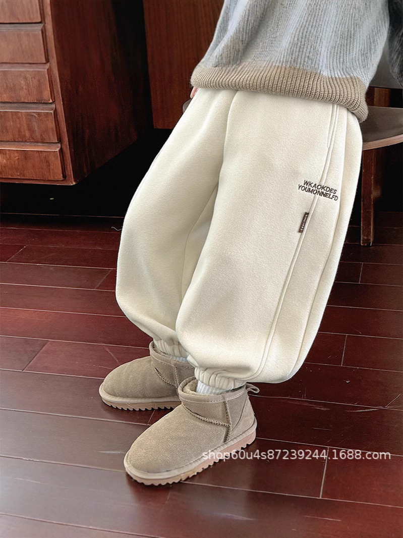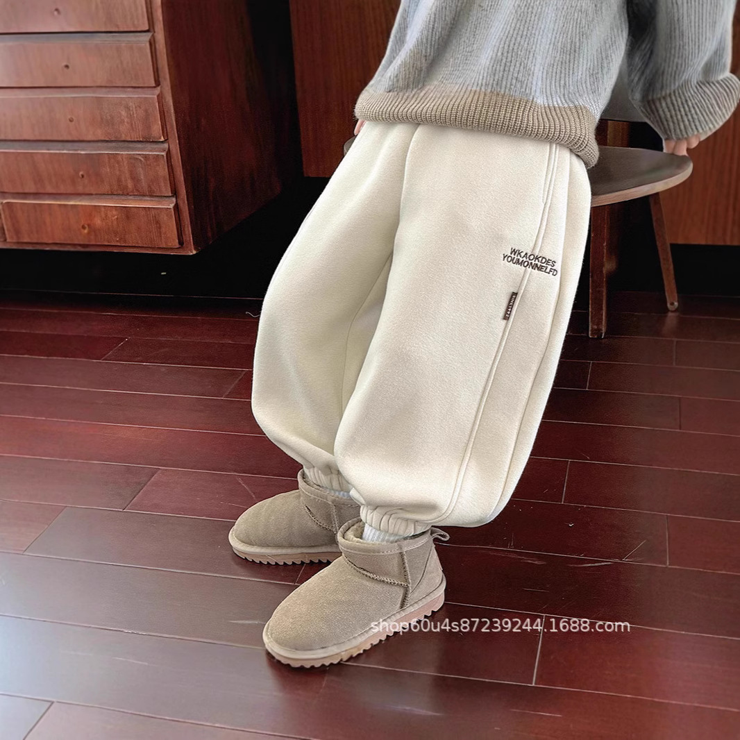 소년 바지 기모 두꺼운 2024 겨울 어린이 한국식 루즈 스포츠 캐주얼 원피스 벨벳 바지 바지스토어 가기