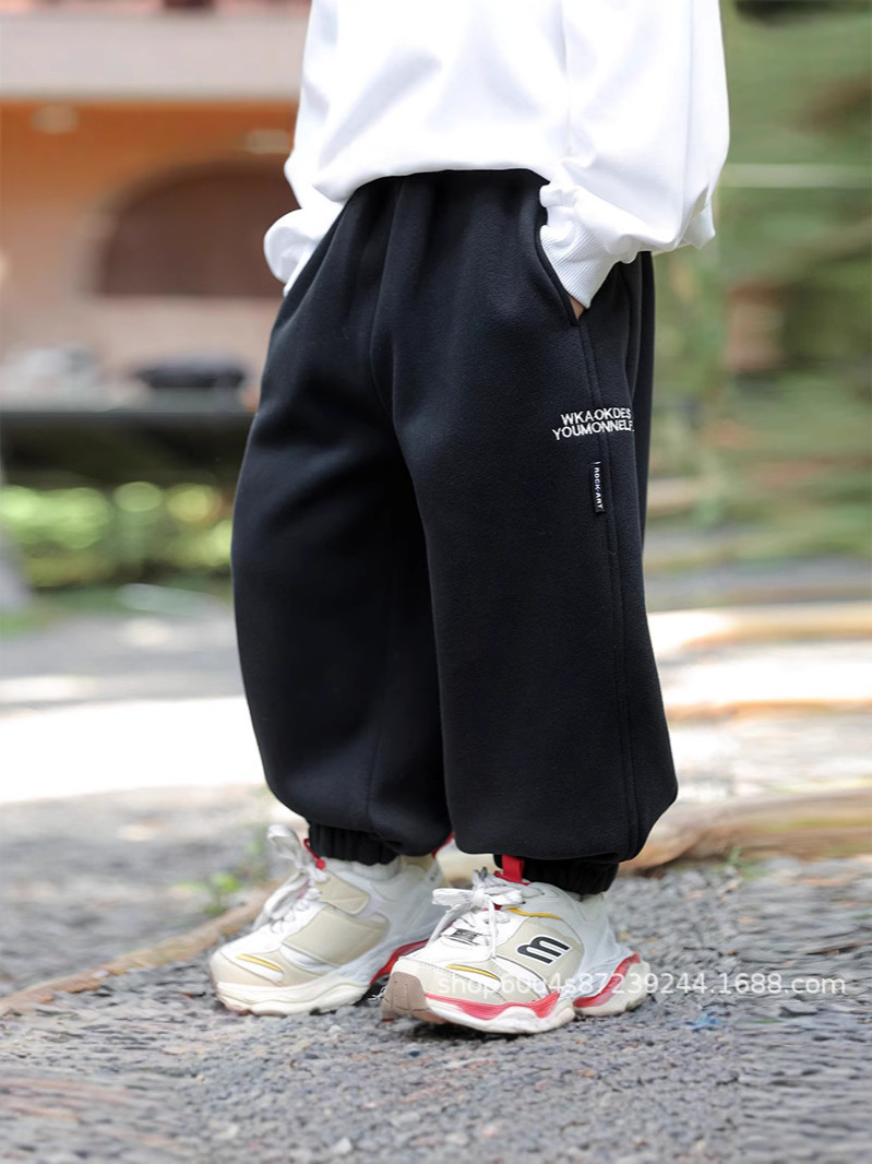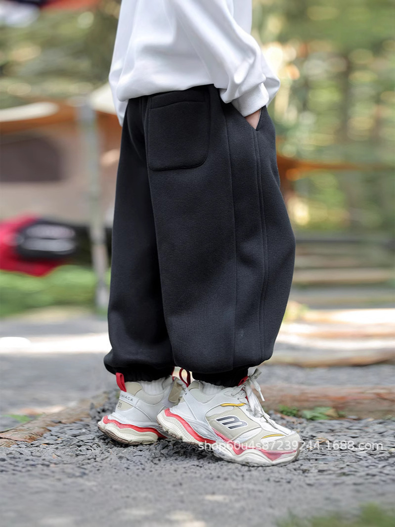 소년 바지 기모 두꺼운 2024 겨울 어린이 한국식 루즈 스포츠 캐주얼 원피스 벨벳 바지 바지