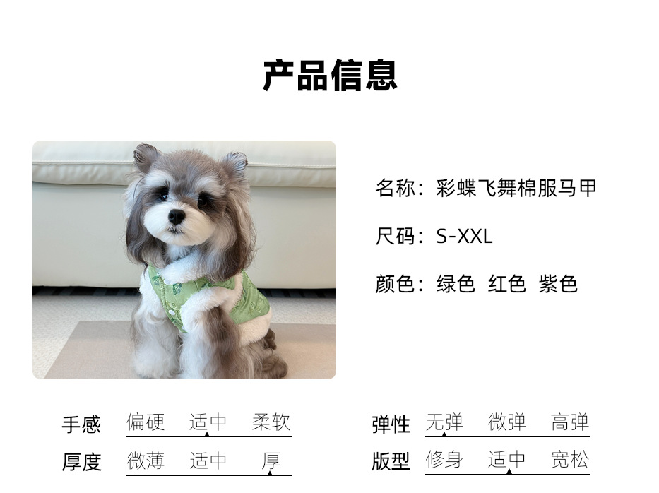 애완 동물 가을과 겨울 옷 새해 국가 왕조 축제 신년 옷 Chanery Teddy Dog 두꺼운 민소매 다리 면화 패딩 재킷