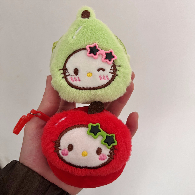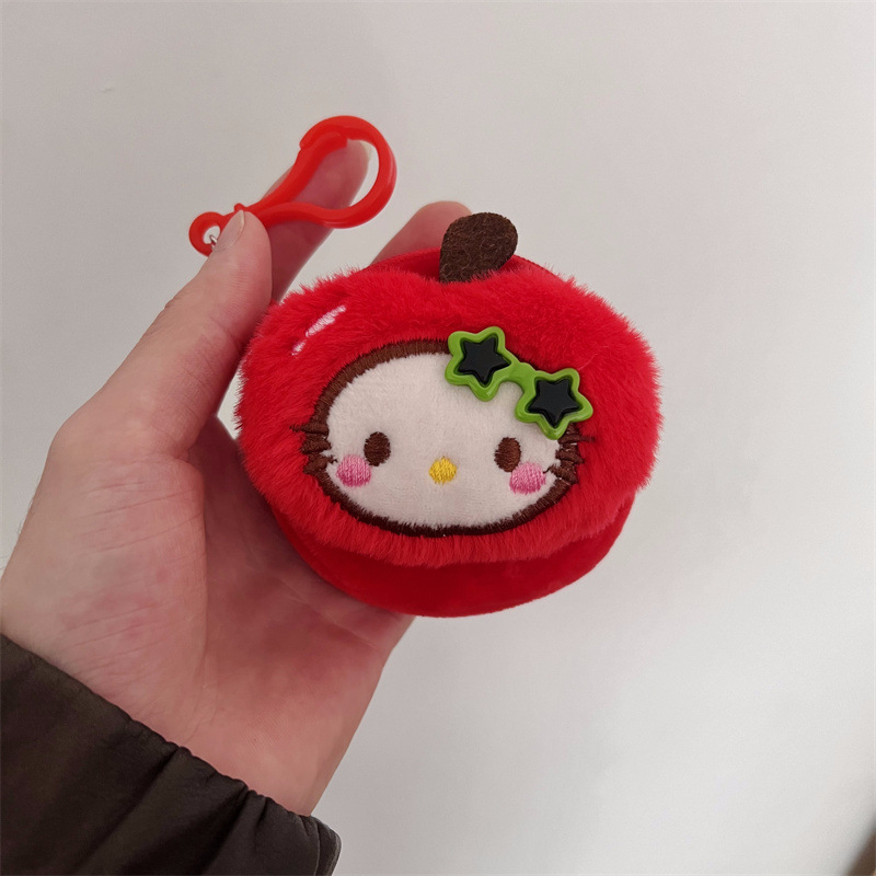 만화 과일 시리즈 사과 배 파인애플 플러시 동전 지갑 휴대용 원형 이어폰 가방 미니 가방 여성용스토어 가기