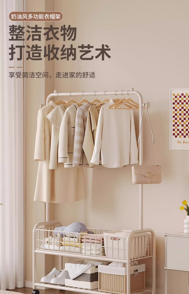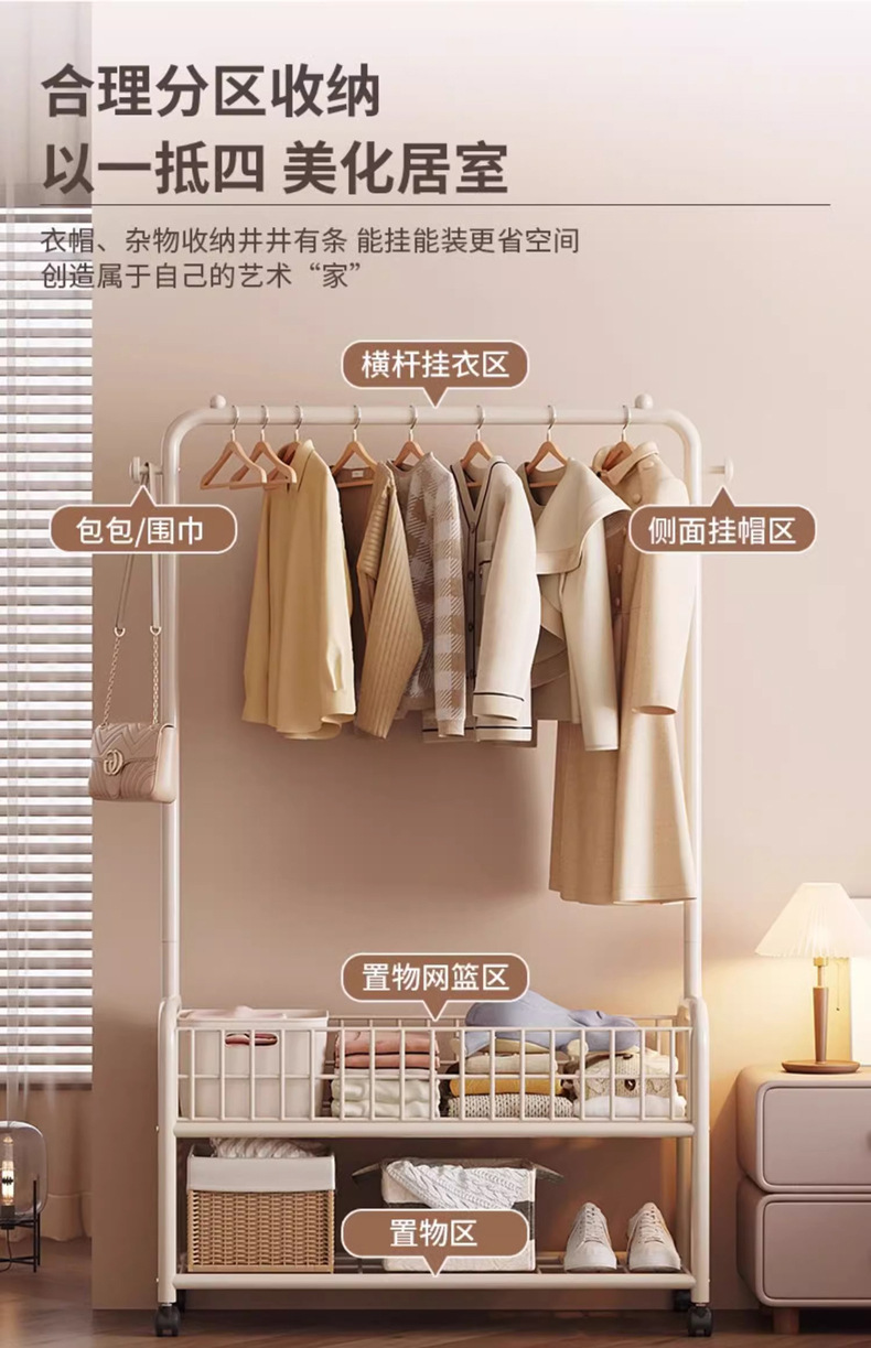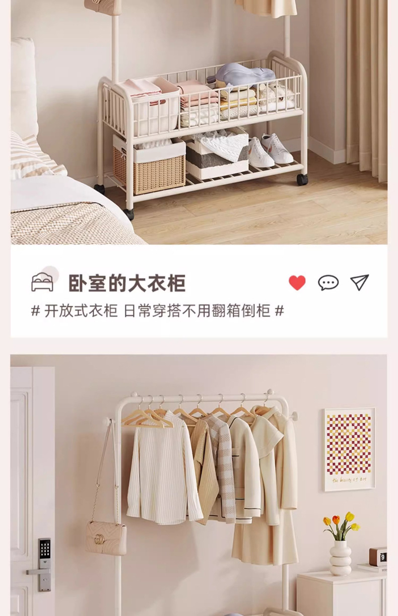 옷 옷걸이 바닥 침실 기숙사 코트 랙 작은 간단한 가정용 의류 보관 건조 랙 모바일스토어 가기