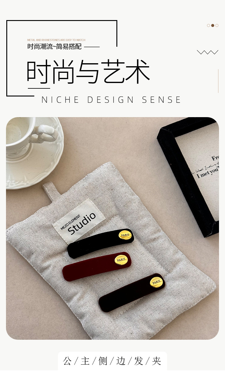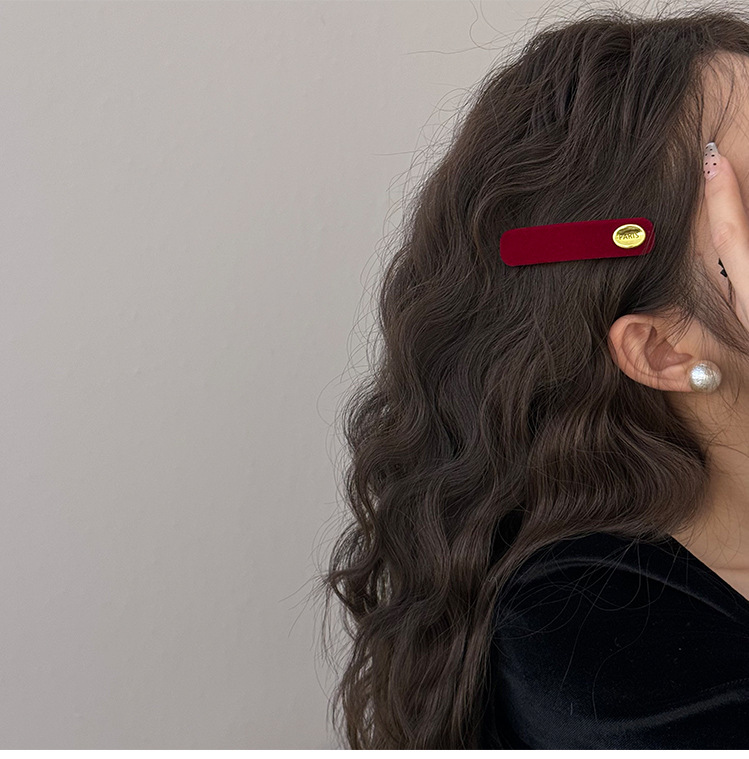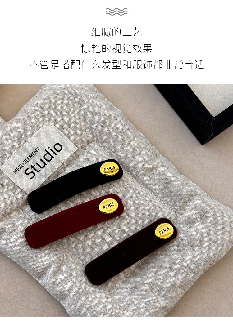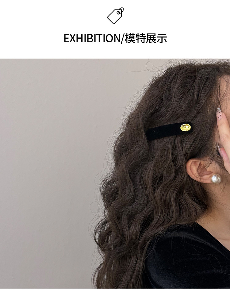 여자를위한 프랑스 문학 복고풍 벨벳 긴 스트립 BB 클립 2024 새로운 가을, 겨울 간단한 하이 엔드 사이드 헤어 클립스토어 가기