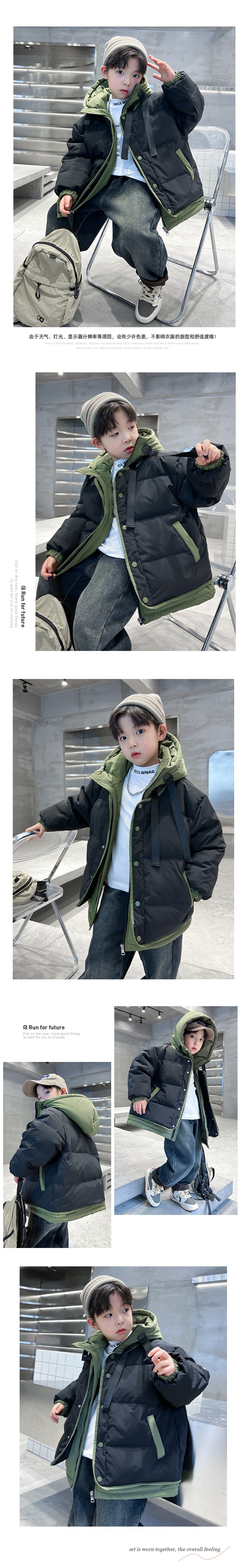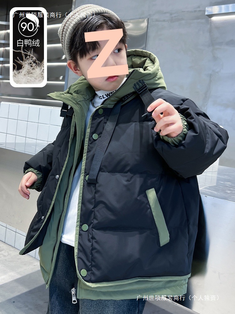 소년의 가짜 2 피스 다운 자켓 겨울 두꺼운 2024 새로운 대형 어린이 겨울 옷 워시 프리 재킷 서양식 겨울 유행스토어 가기