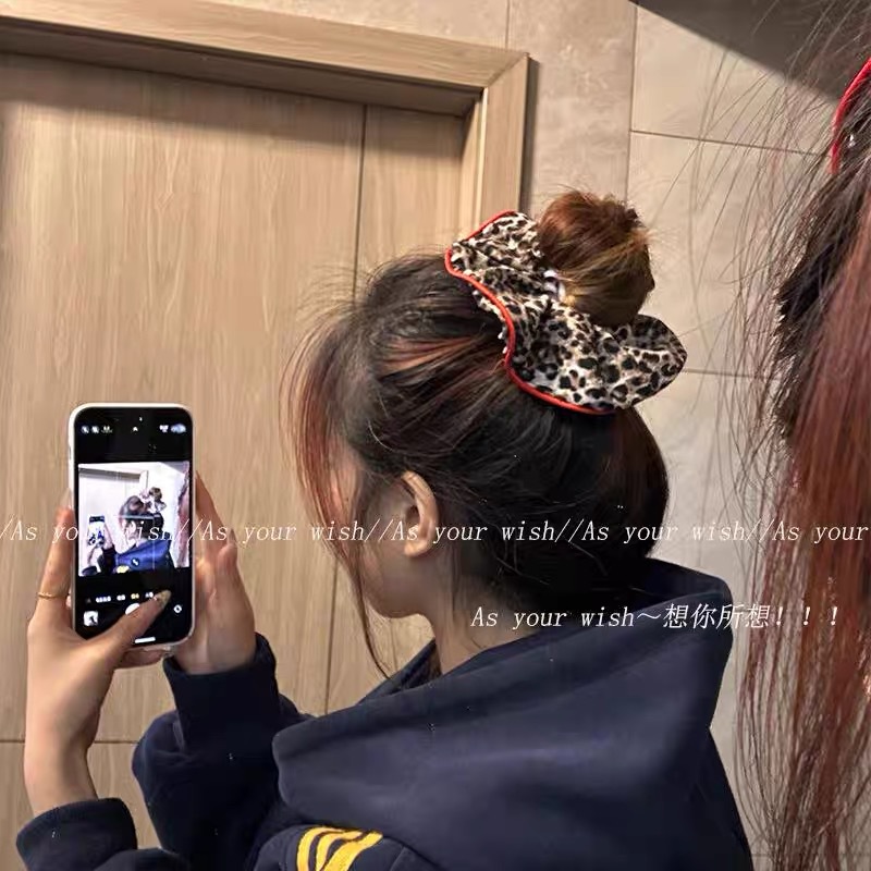 스파이스 걸스 레드 엣지 레오파드 무늬 헤어 링 가을과 겨울 새로운 달콤한 쿨 대형 장내 헤어 링 하이 센스 소녀 낮은 말꼬리 고무 텐트 헤드 로프스토어 가기