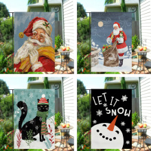 跨境圣诞节雪人双面印花亚麻定花园旗户外庭院花园节日装饰小旗帜
