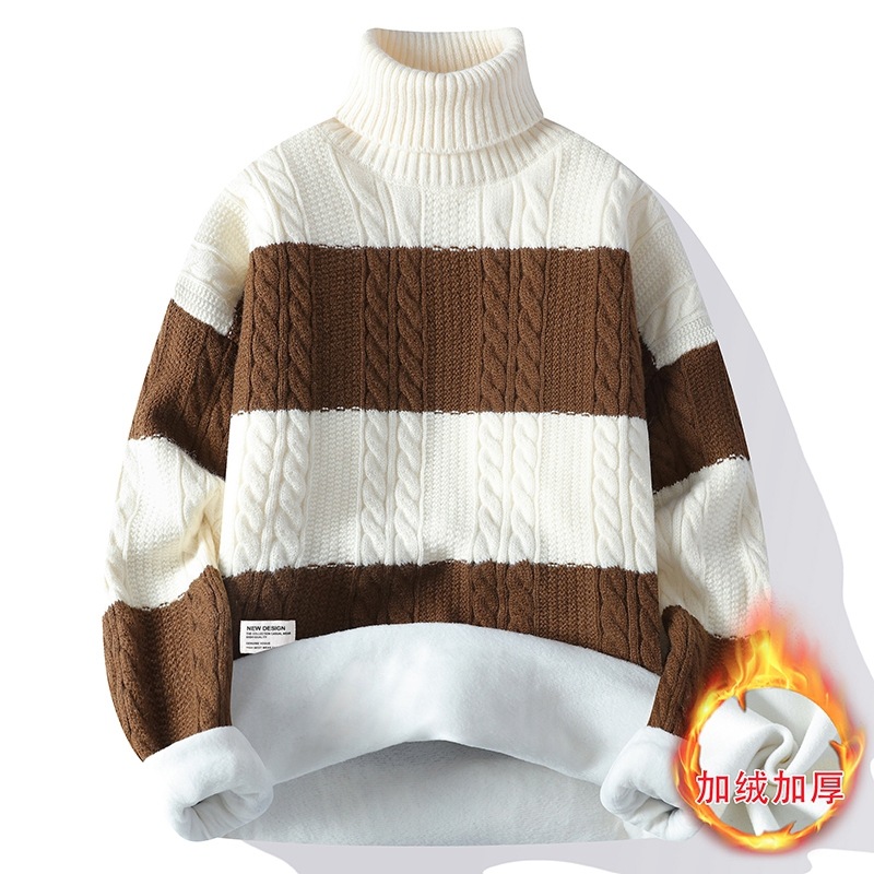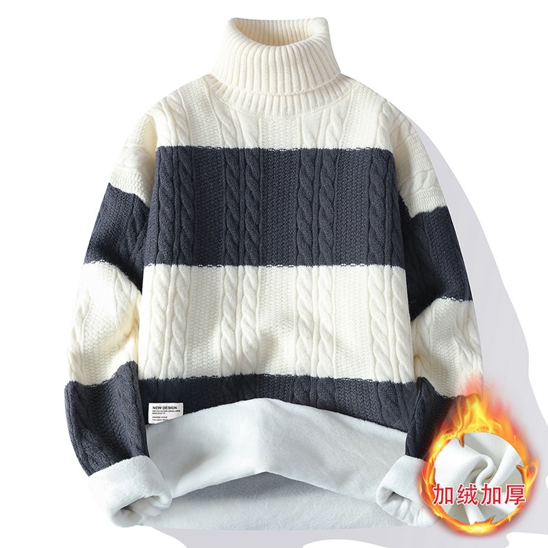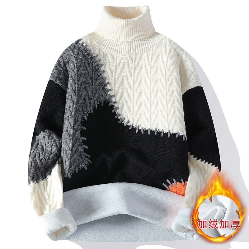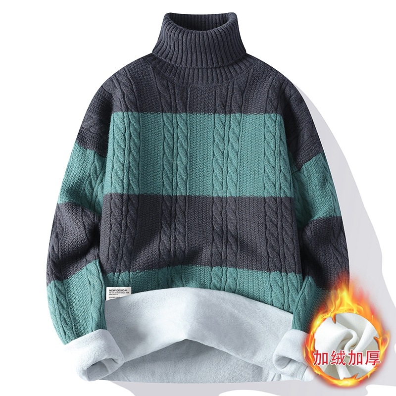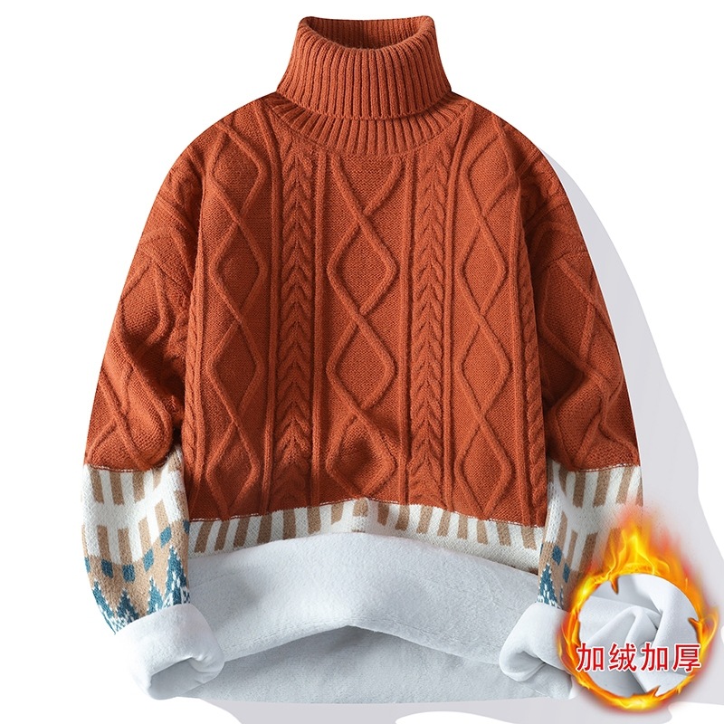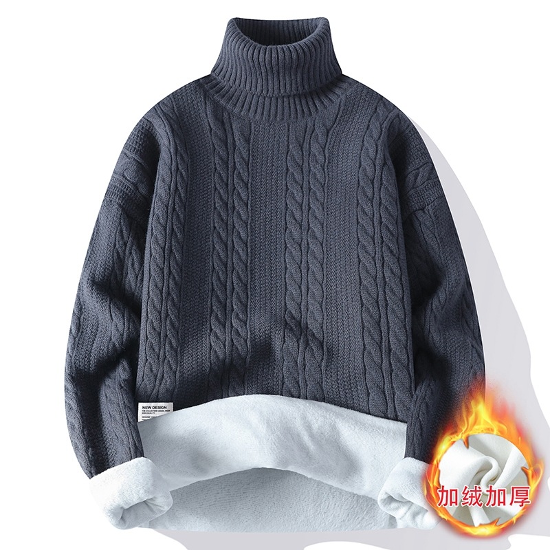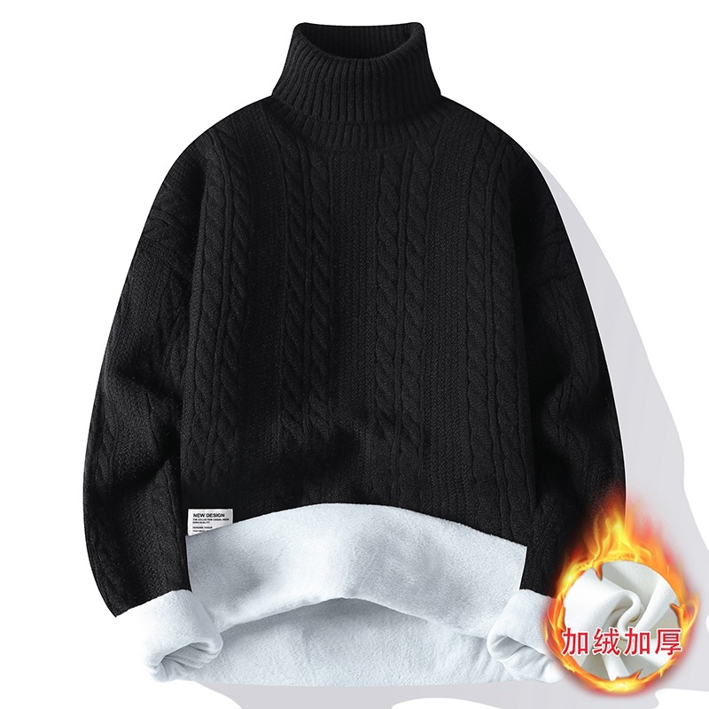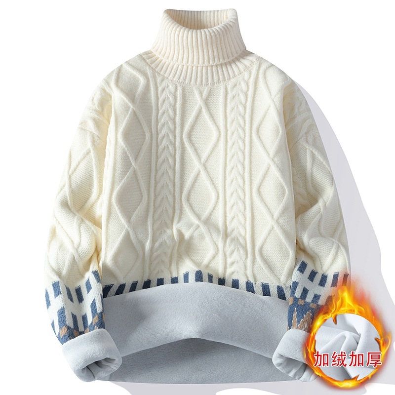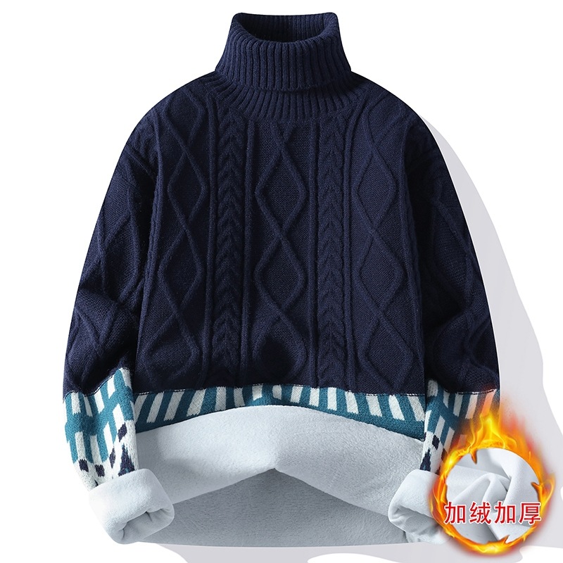 터틀넥 스웨터 남자 기모 두꺼운 겨울 새 자카드 캐주얼 게으른 스타일베이스 셔츠 최고 고급 니트 셔츠스토어 가기