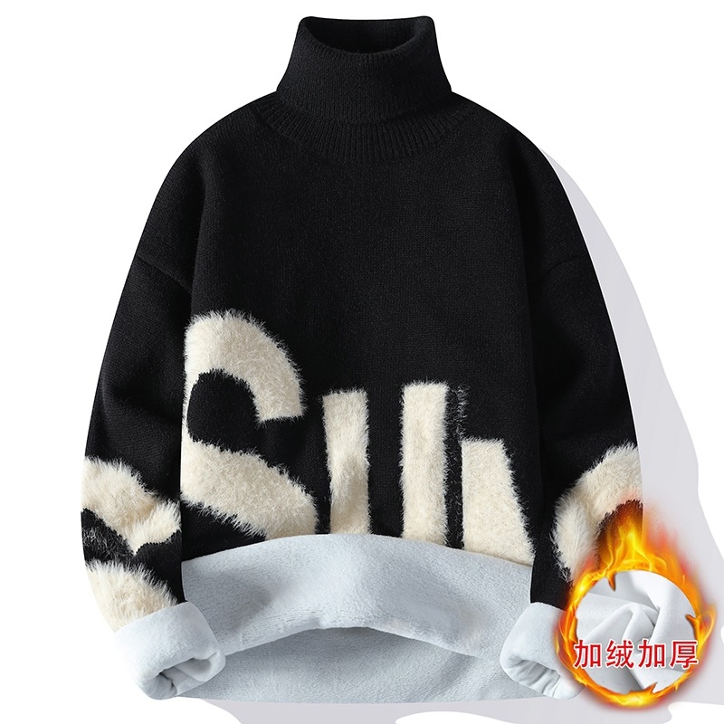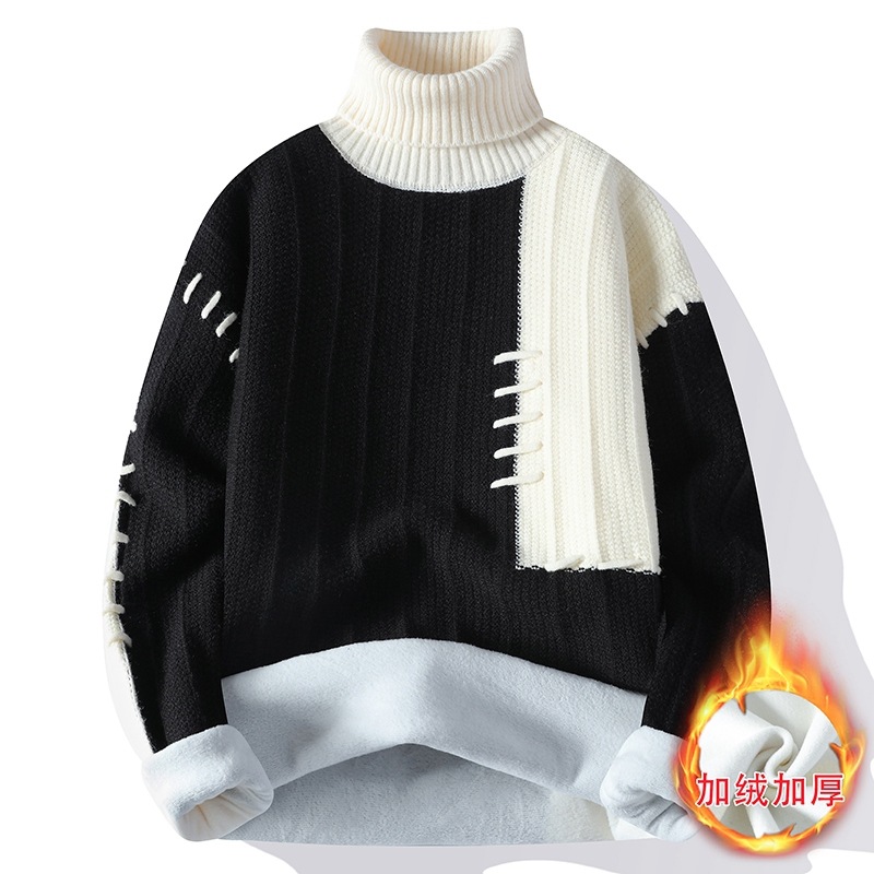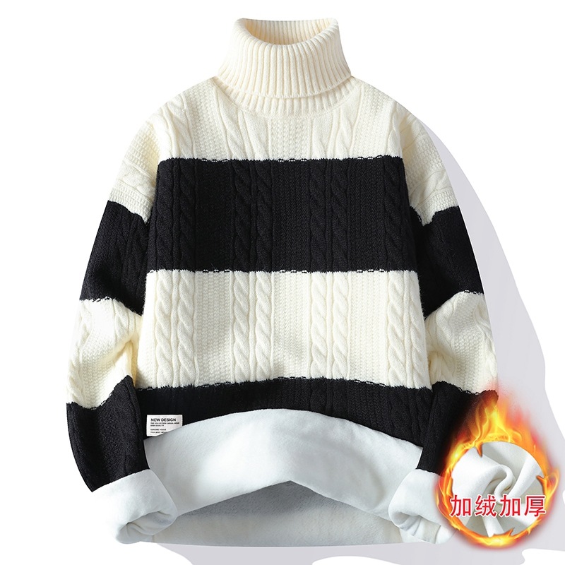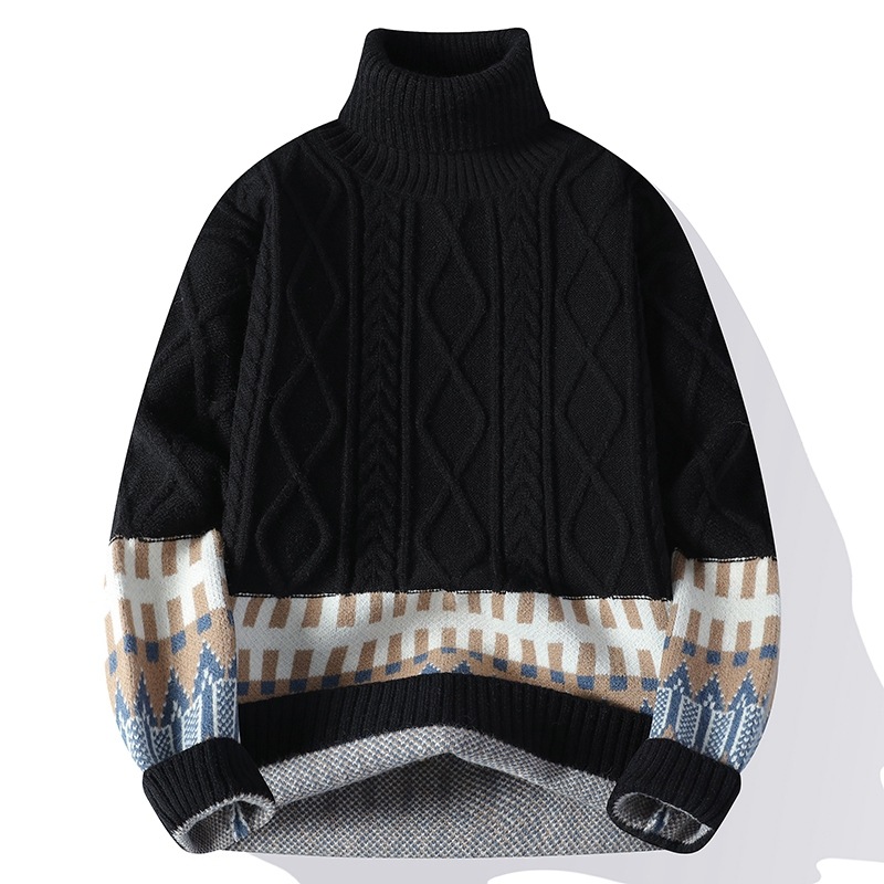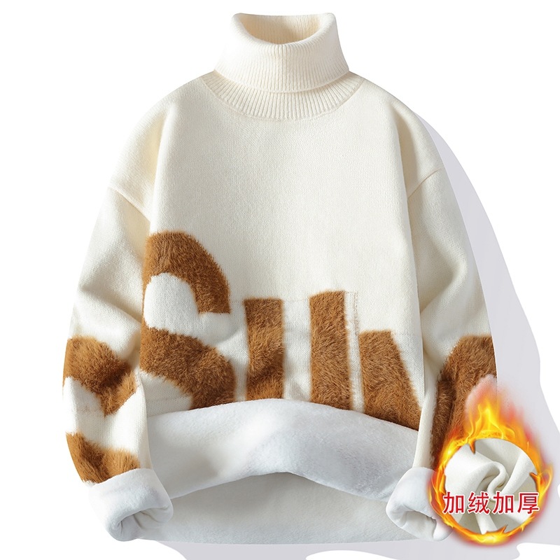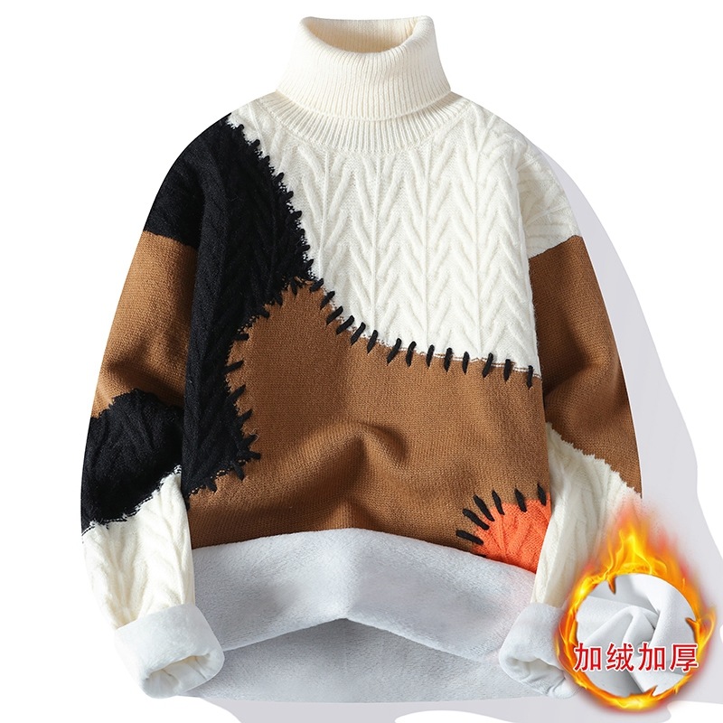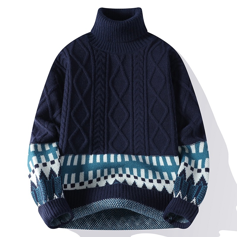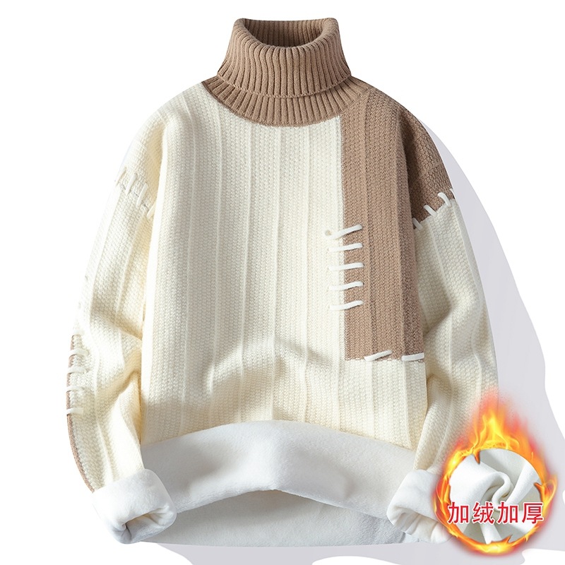 터틀넥 스웨터 남자 기모 두꺼운 겨울 새 자카드 캐주얼 게으른 스타일베이스 셔츠 최고 고급 니트 셔츠스토어 가기