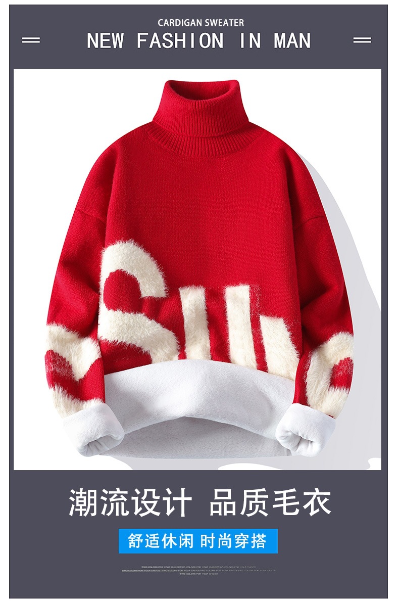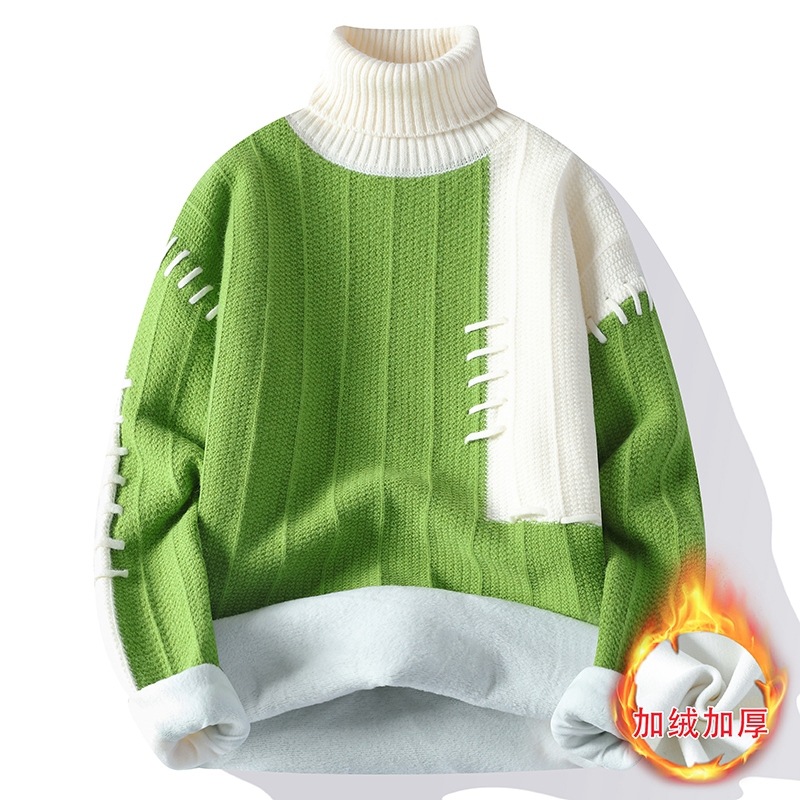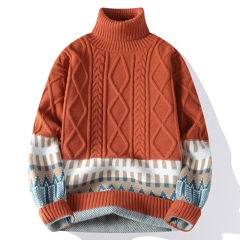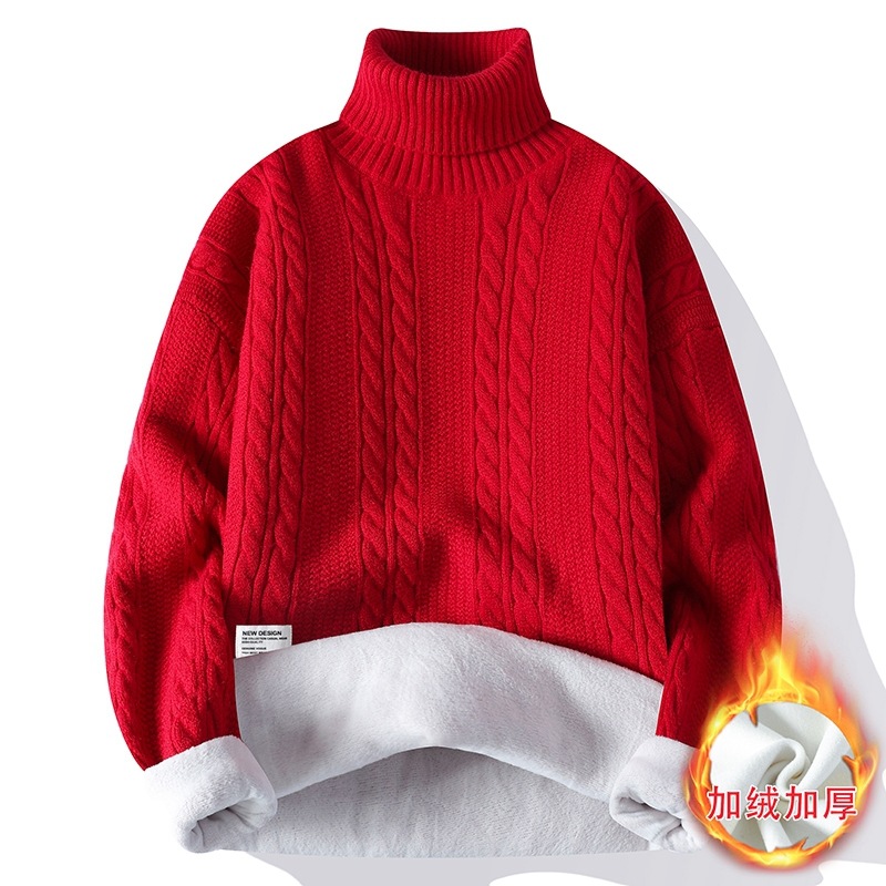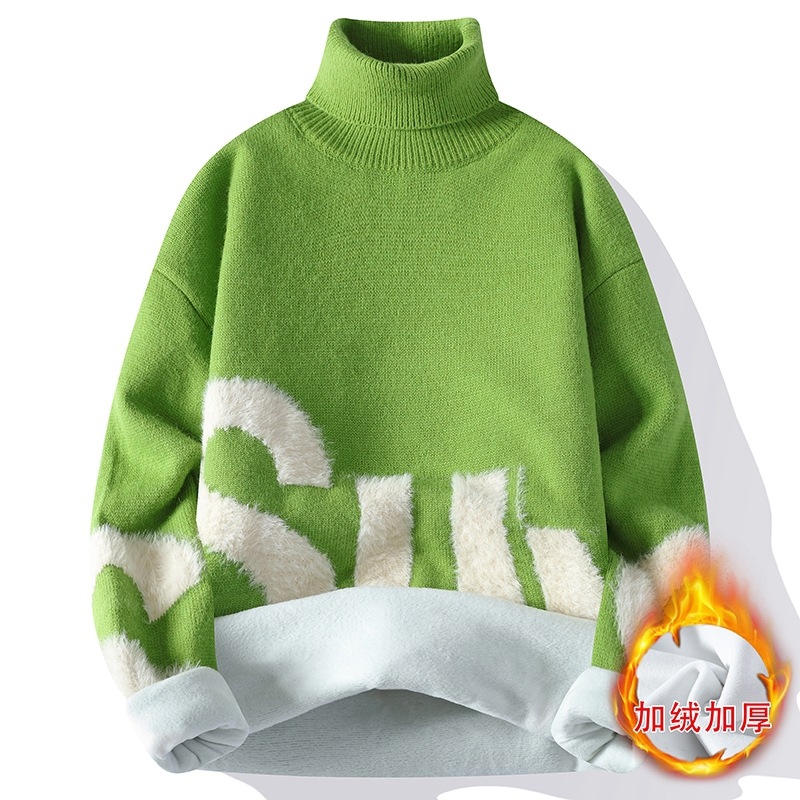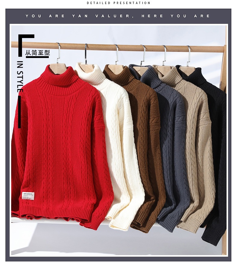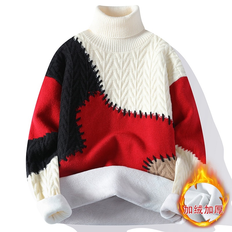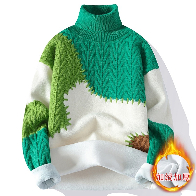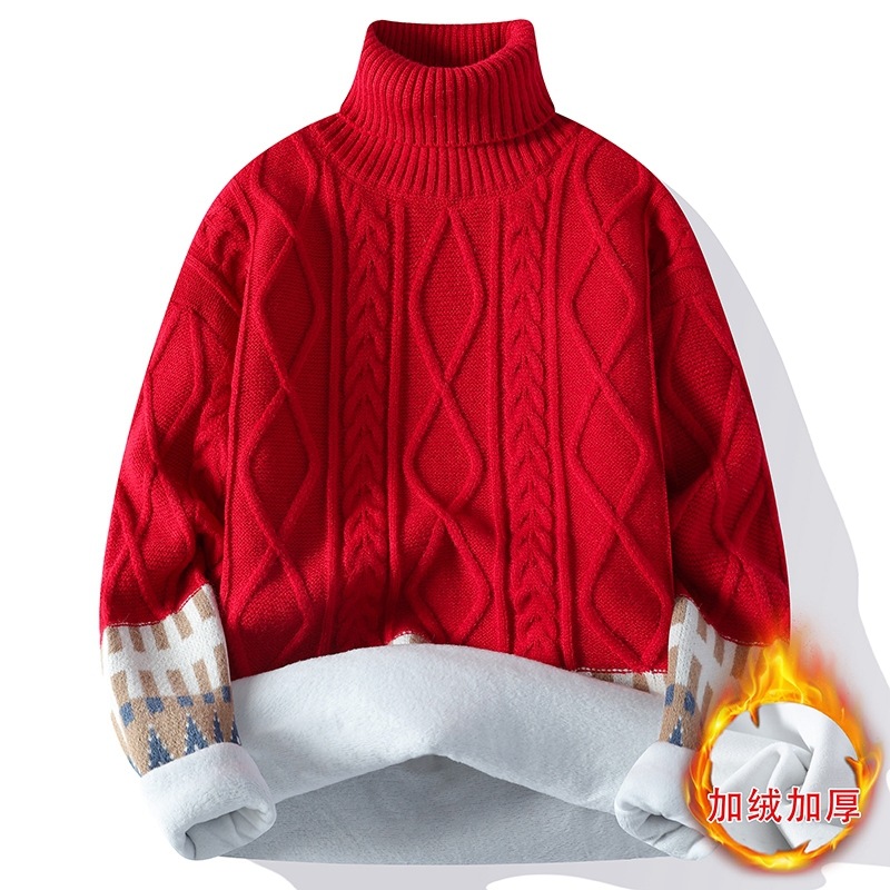 터틀넥 스웨터 남자 기모 두꺼운 겨울 새 자카드 캐주얼 게으른 스타일베이스 셔츠 최고 고급 니트 셔츠스토어 가기