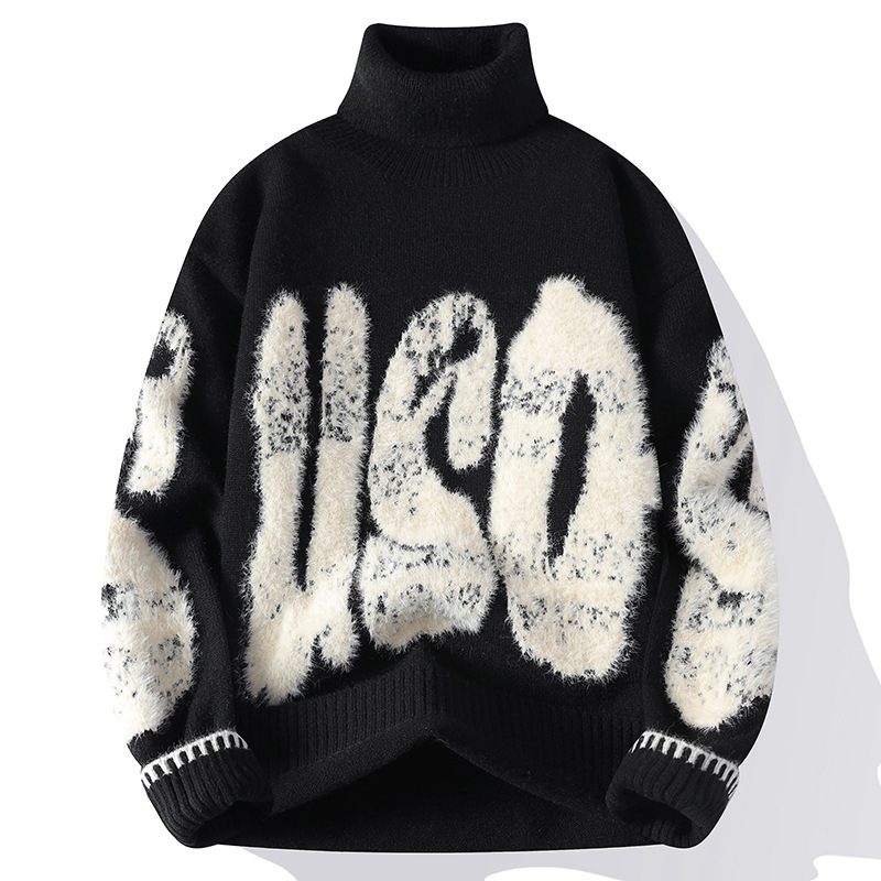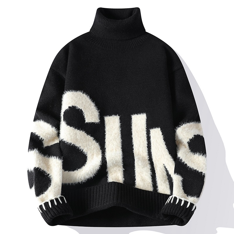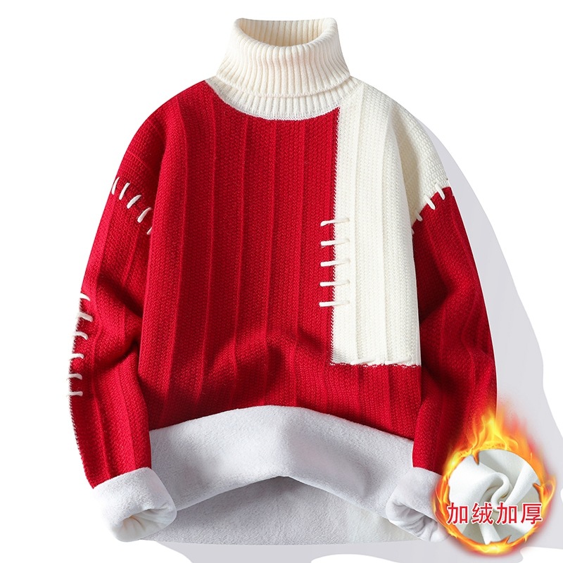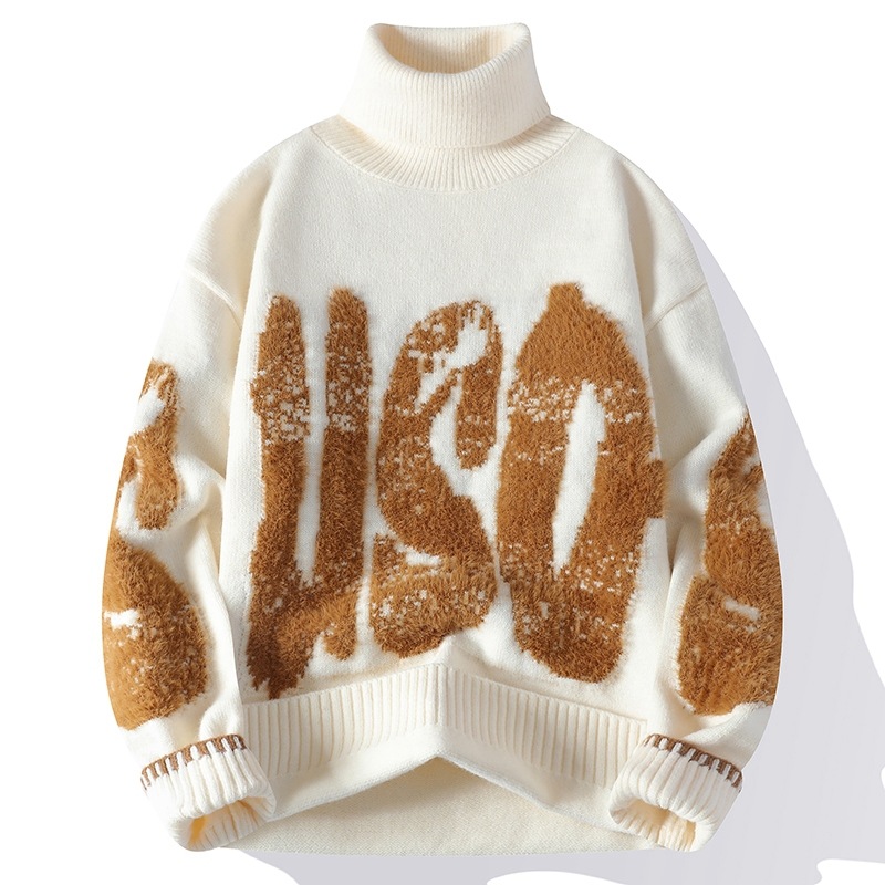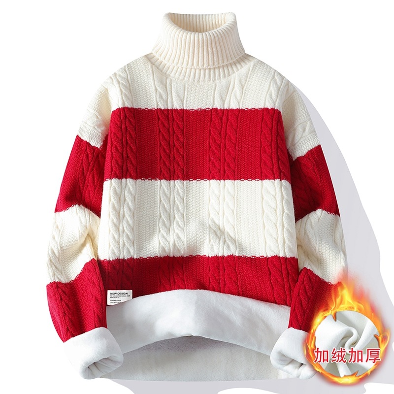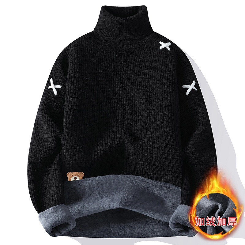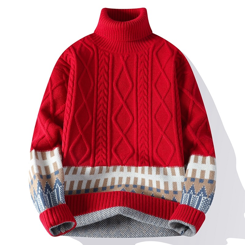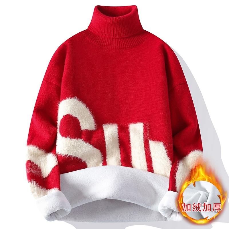 터틀넥 스웨터 남자 기모 두꺼운 겨울 새 자카드 캐주얼 게으른 스타일베이스 셔츠 최고 고급 니트 셔츠스토어 가기