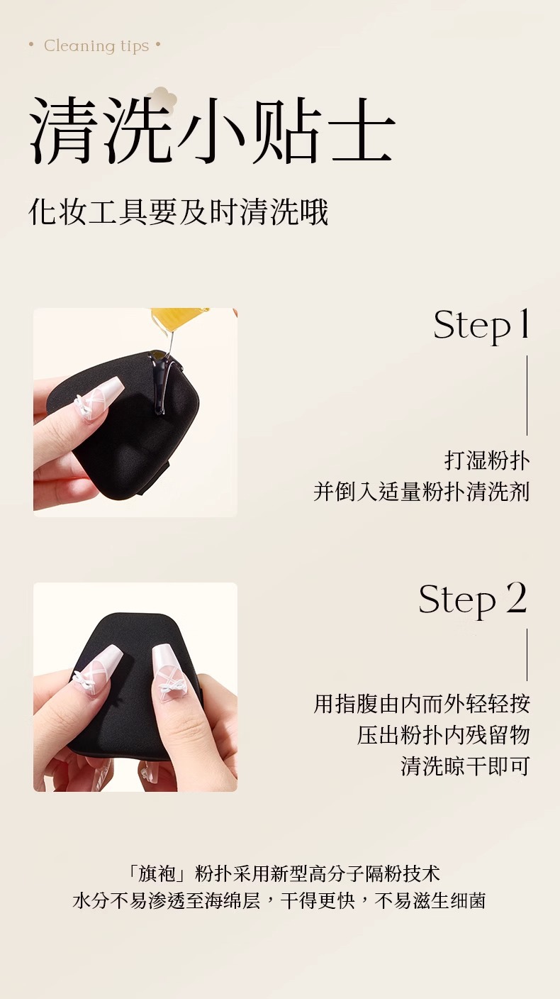 • 리슈 치파오 파우더 퍼프 [3개입] + 수납박스 + 파우더 퍼프 클리너