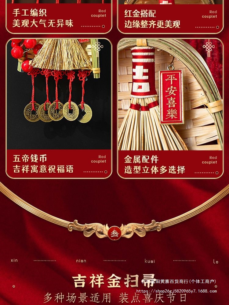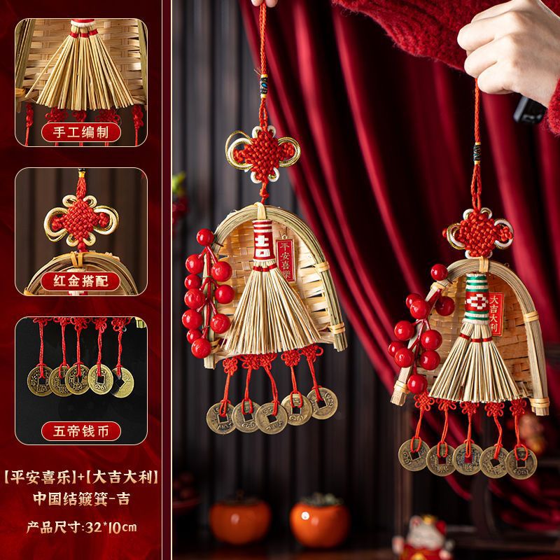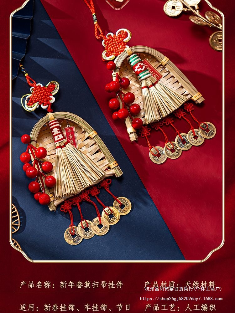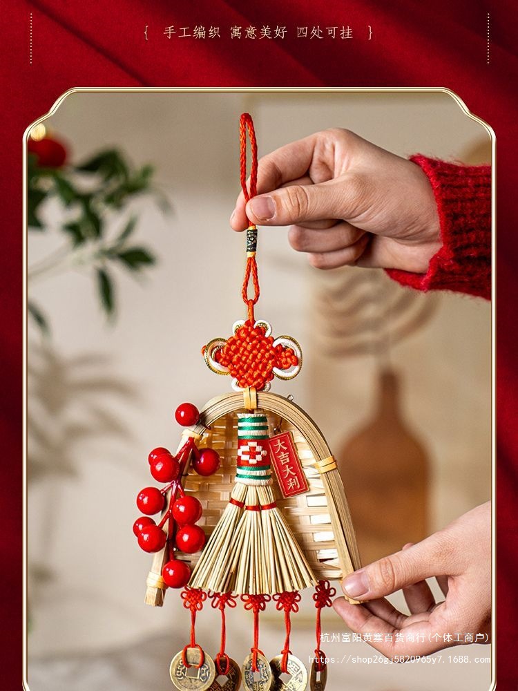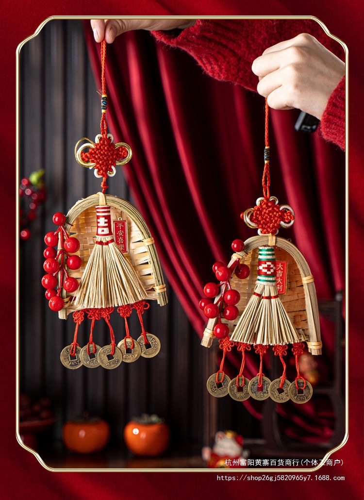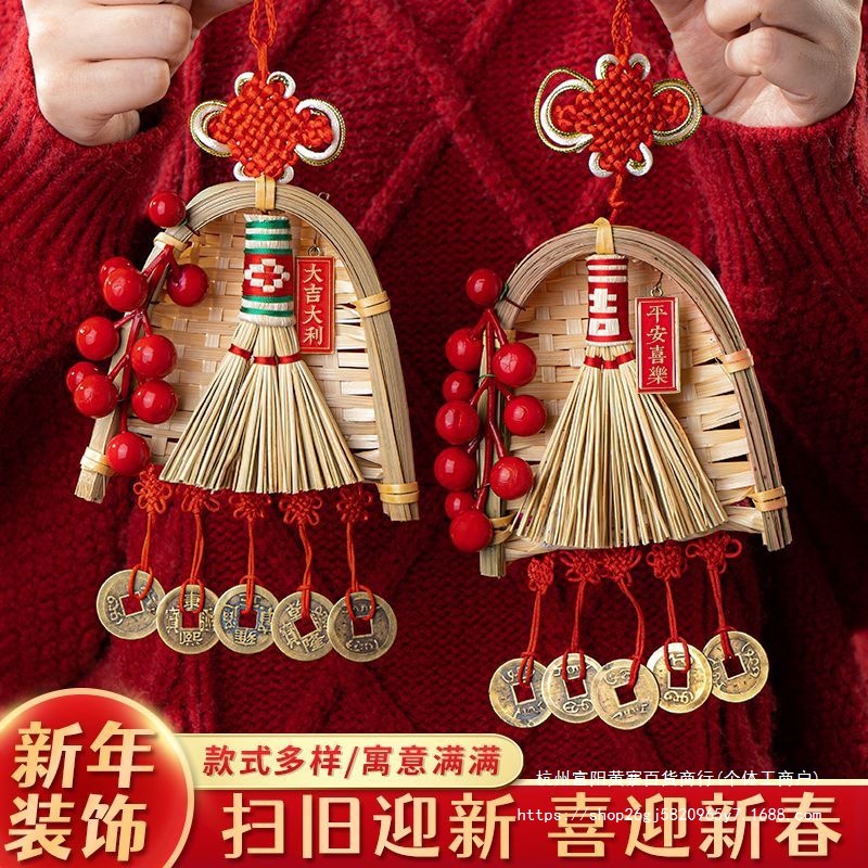 FX2025 신년 장식 빗자루 펜던트 구정 봄 축제 TV 배경 벽 가족 분위기 매달려 장식 배열 용품스토어 가기