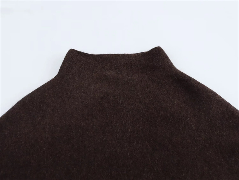 2024 겨울 새로운 여성 유럽과 미국의 패션 느슨한 비대칭 스탠드 칼라 니트 케이프 재킷 중간 길이 스웨터