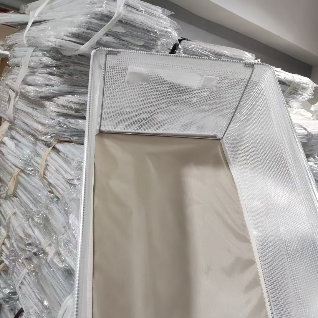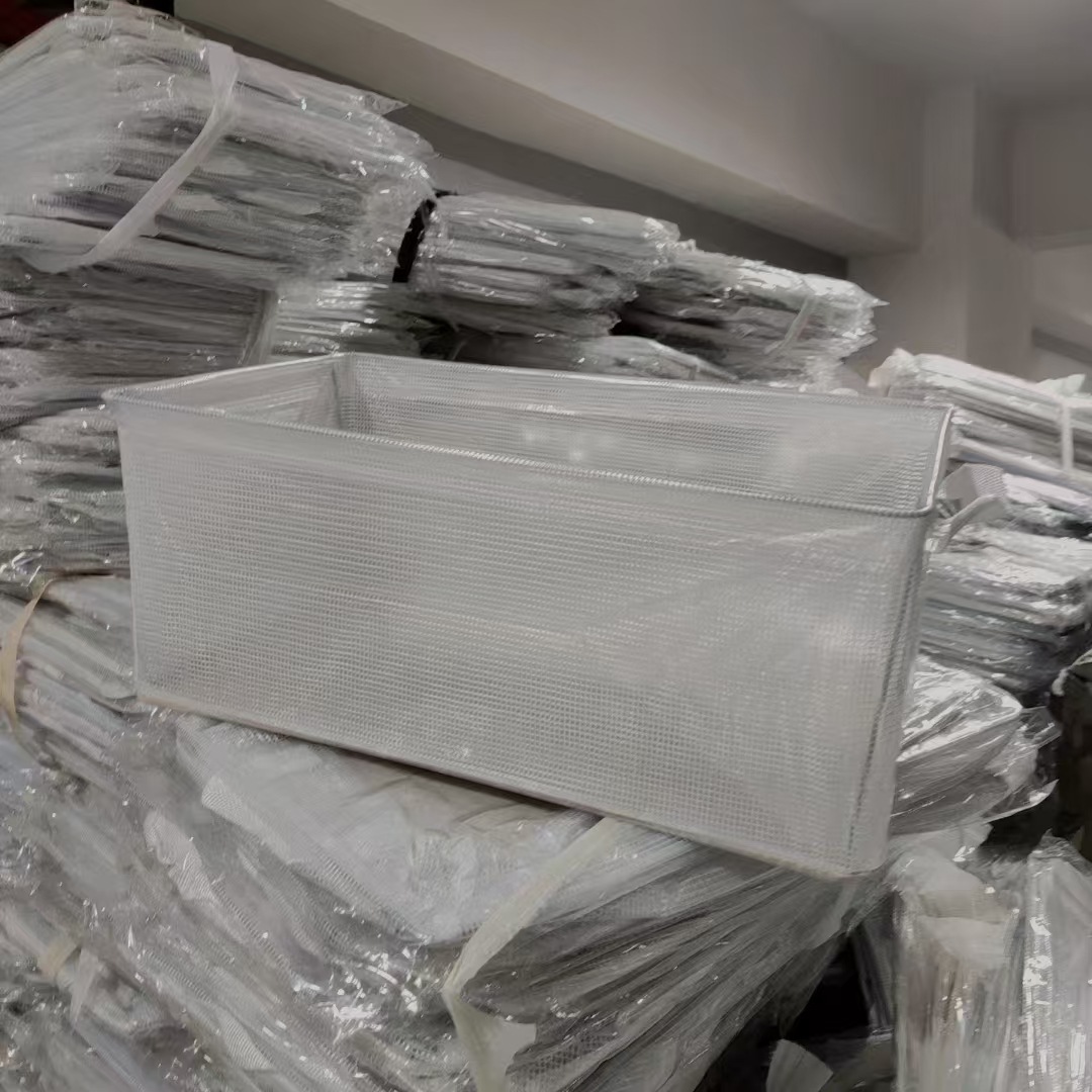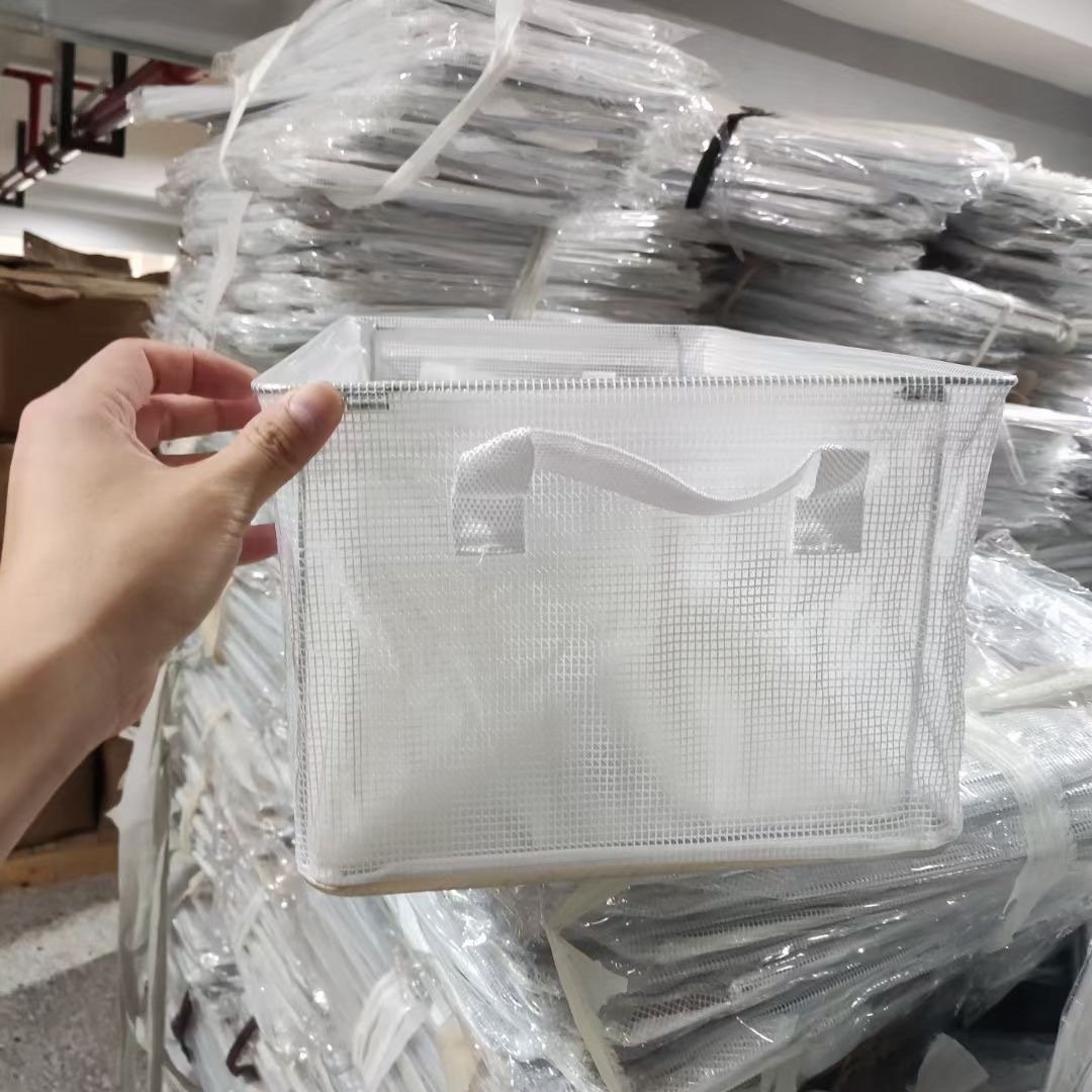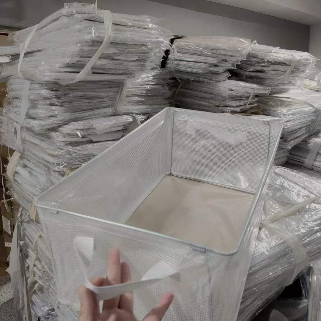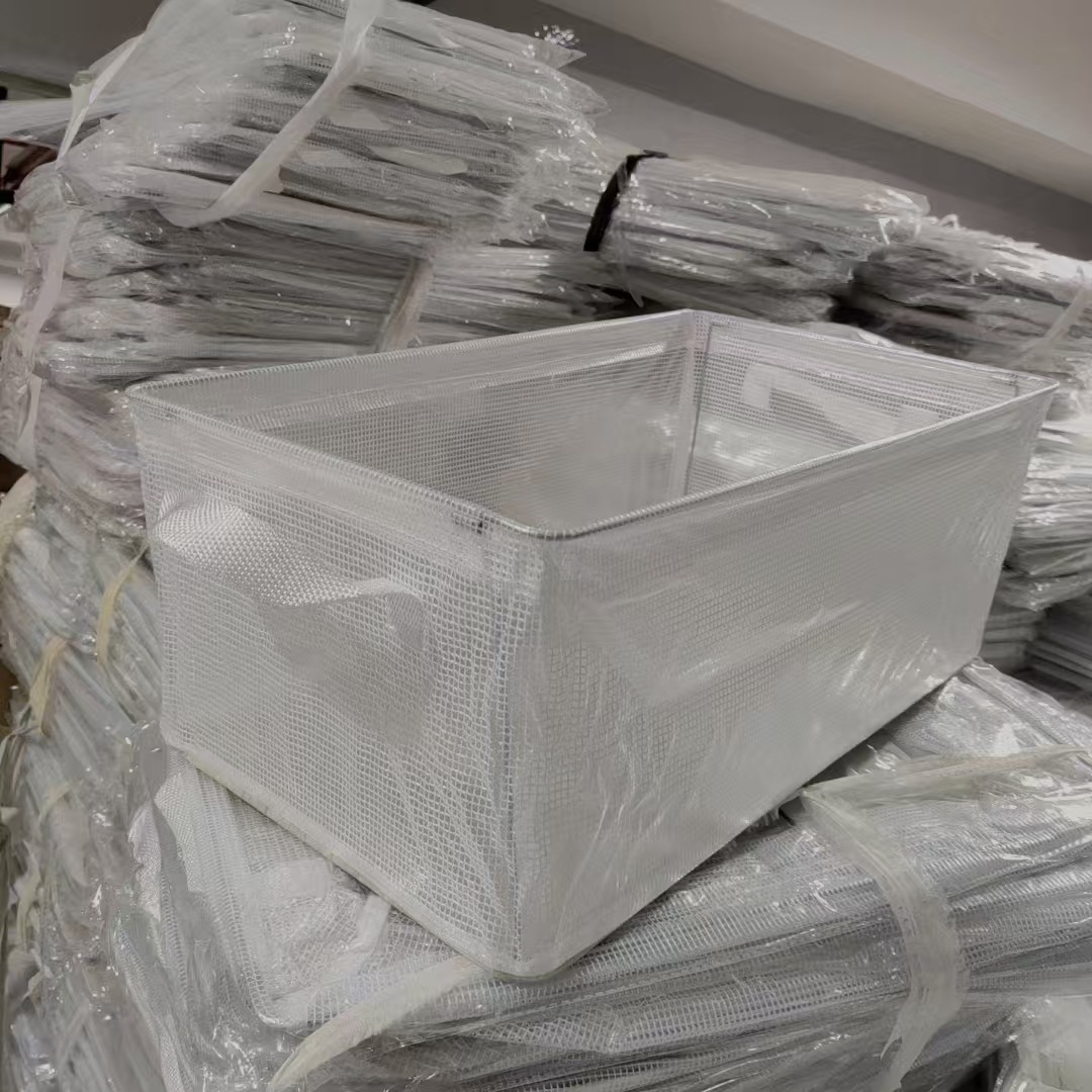 防水无盖网格收纳盒,整体材料是防水特性的PVC及网格布料覆膜而成,两边设计2个手提,使用方便;盒子周边用铁架支撑,两边留2个铁架支撑整体框架,底部是密度板,用牛津布190D面料包边,形成一个结实坚固的生活用品收纳盒收纳筐;平时可以用于装衣裤、内衣物等,生活中的一些杂物、生活用品及书本玩具等等,只要大小合适都可以装,起到整理清洁室内环境,温馨舒适的氛围。本着防水的特性功能,可以放很多场地,帮助做生活小助理;不用时可以折叠存放,节省室内空间;用时把2边的支架撑开即可用,非常的简单方便,轻松携带各地;经济实用,价廉物美,欢迎选购!,材料是防水涂层的白色透明网格,防水防潮,易打理,底部由190D牛津布包住的密度板支撑,质量牢固结实,可以承受20-30公斤的重量;平时一般房屋内装衣裤、毛衣、书本、玩具的各种生活用品;起到归纳整洁室内空间,温馨舒适的环境;经济适用,使用方便简单;不用时可以折叠存放,节省室内空间:价廉物美,欢迎选购!
