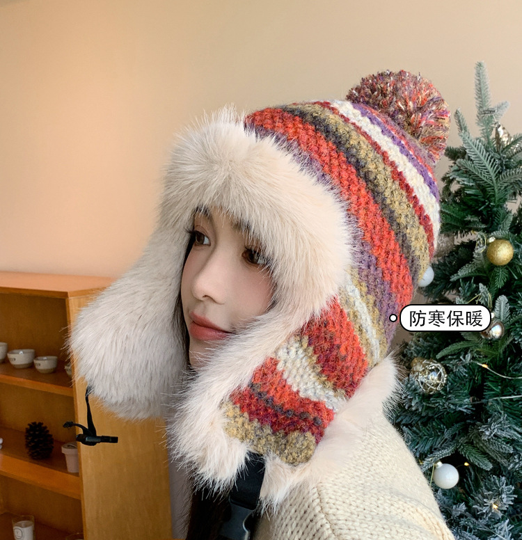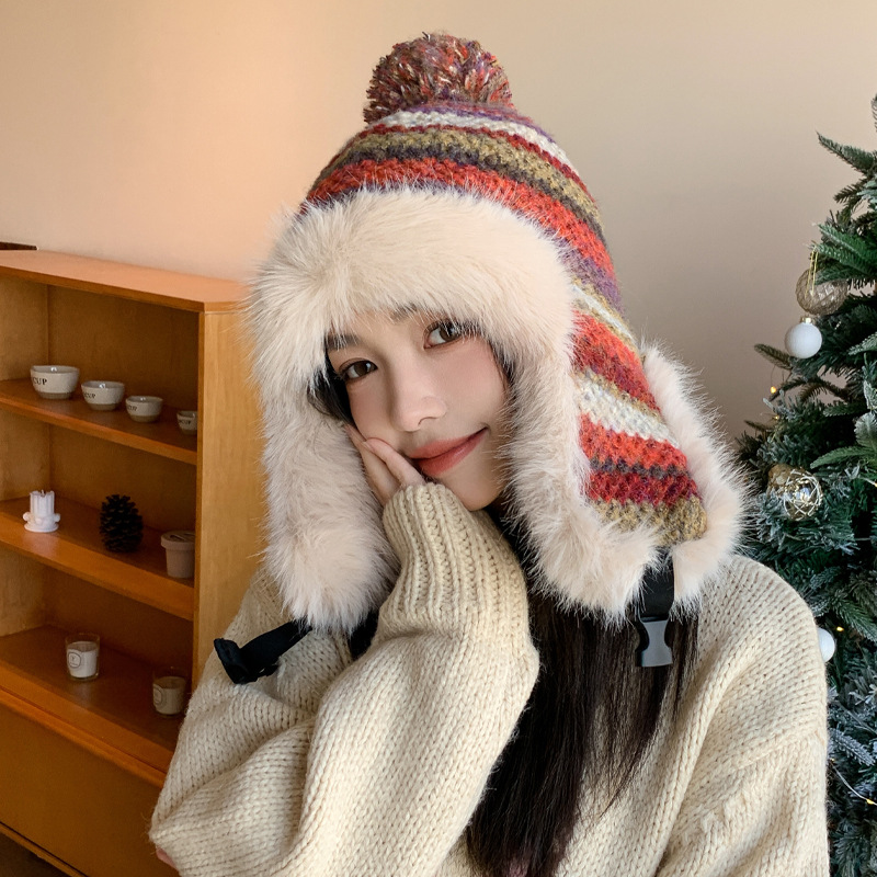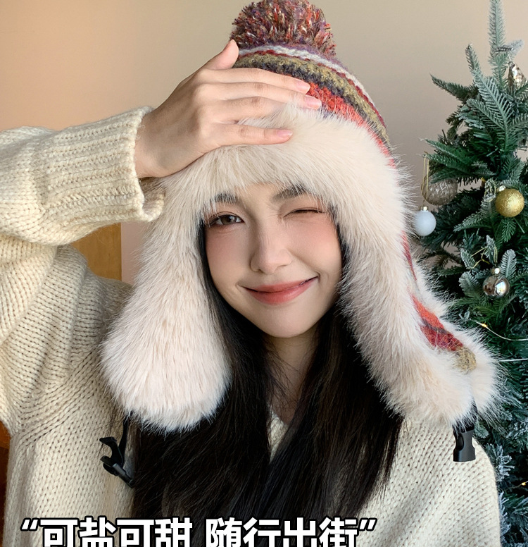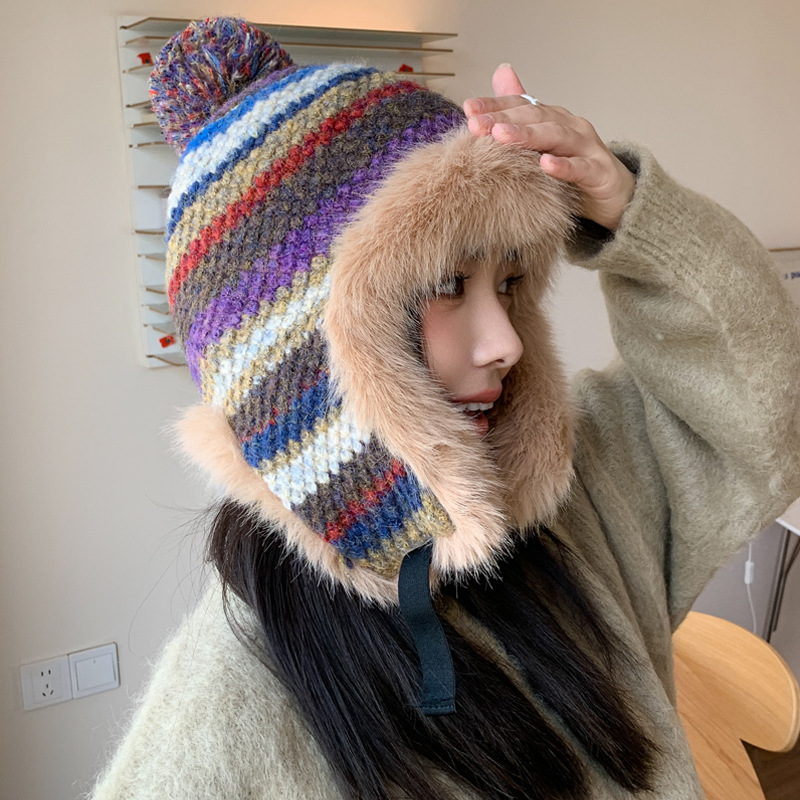 봉제 냉방 레이 펑 모자 겨울 승마 방풍 따뜻한 니트 모자 기모 두꺼운 귀 보호 동북 면화 모자