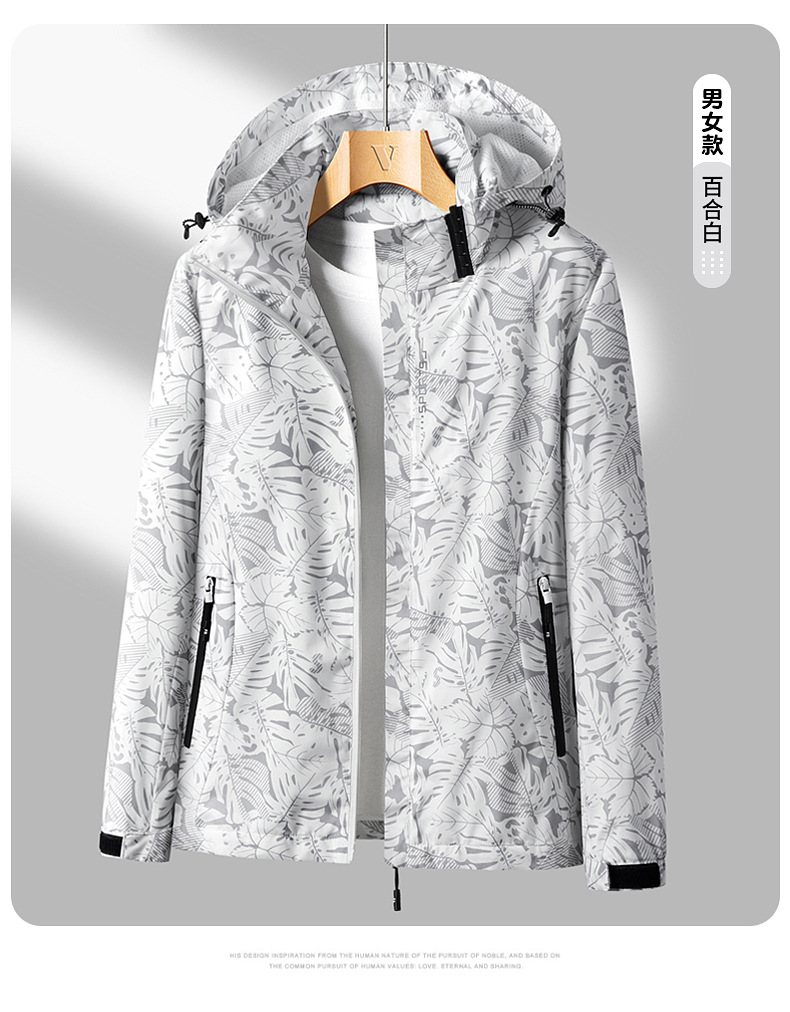 새로운 야외 봄과 가을 위장 남성과 여성의 방풍 재킷 커플의 충전 의류 싱글 레이어 재킷 스포츠 등산 세트