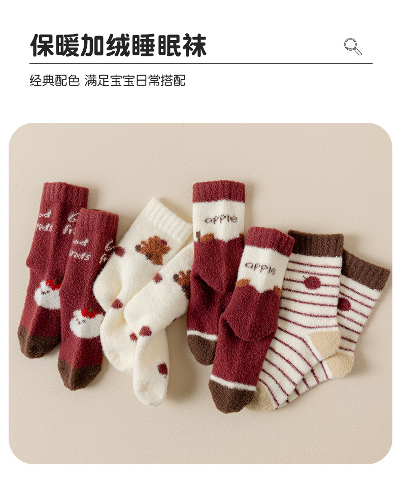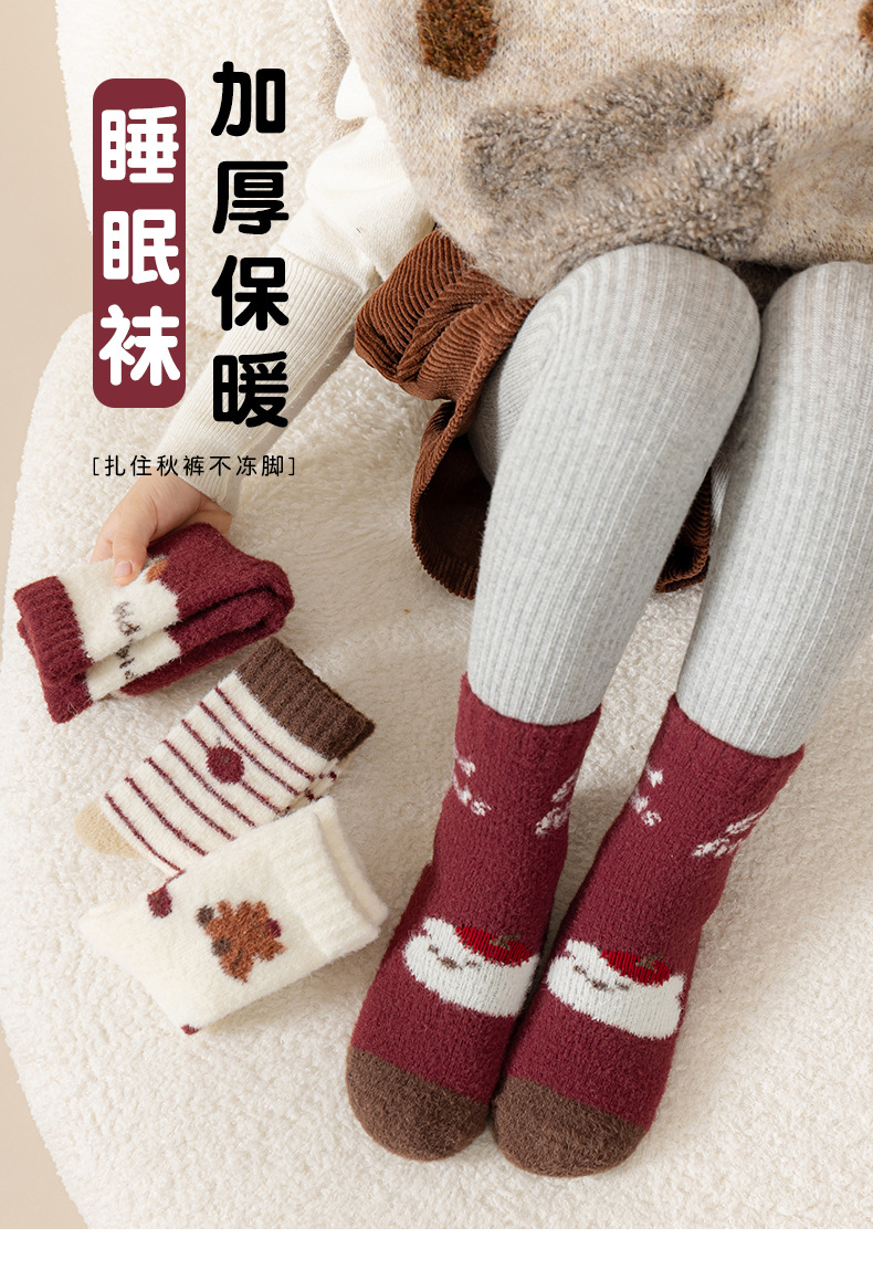 어린이 양말 겨울 한국 스타일 두꺼운 기모 따뜻한 줄무늬 미드 튜브 양말 양면 양털 수면 바닥 양말스토어 가기