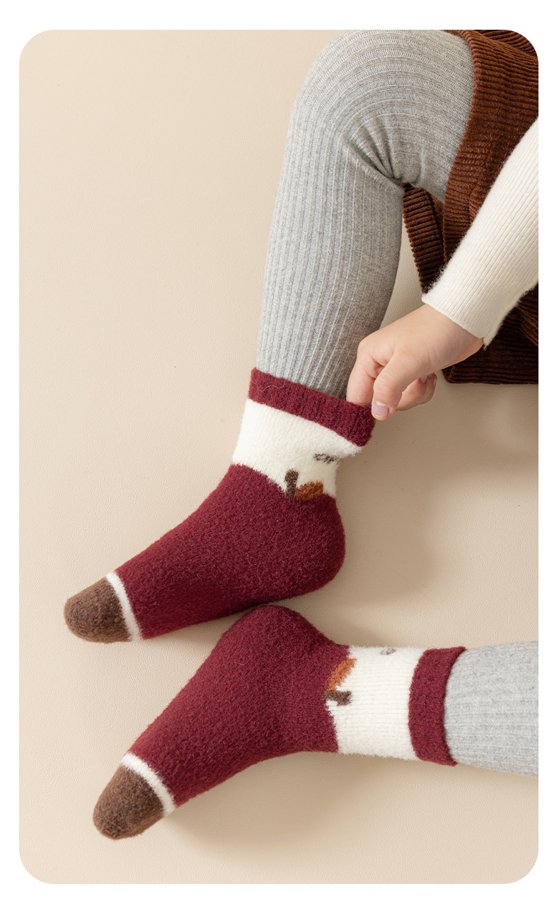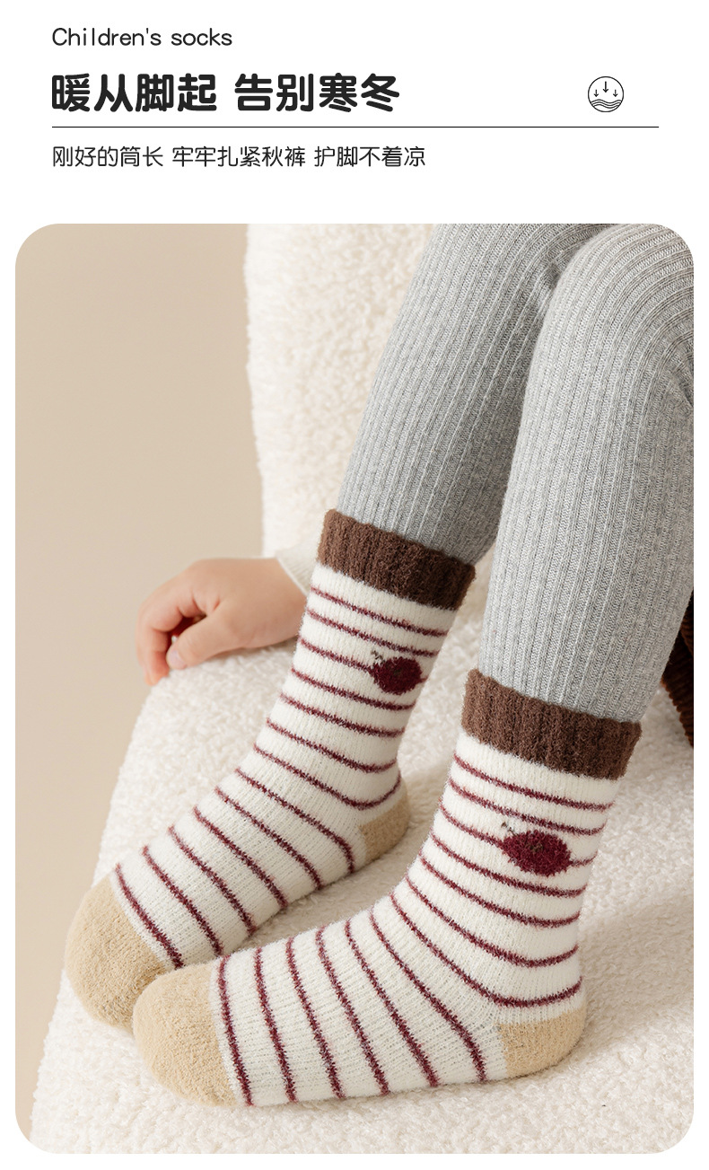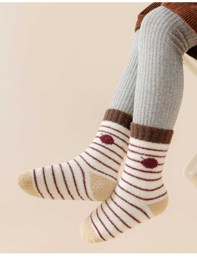 어린이 양말 겨울 한국 스타일 두꺼운 기모 따뜻한 줄무늬 미드 튜브 양말 양면 양털 수면 바닥 양말