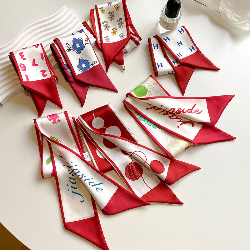 레드 스타일 얇은 좁은 실크 스카프 새로운 스타일 우아한 올 매치 스카프 장식 여성을위한 하이 엔드 센스 프랑스 스타일 헤어 타이 백 리본