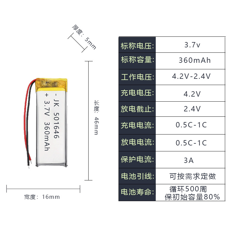 501646 폴리머 충전 보물 리튬 배터리 360mAh3.7V 녹음 펜 클렌저 블루투스 헤드셋