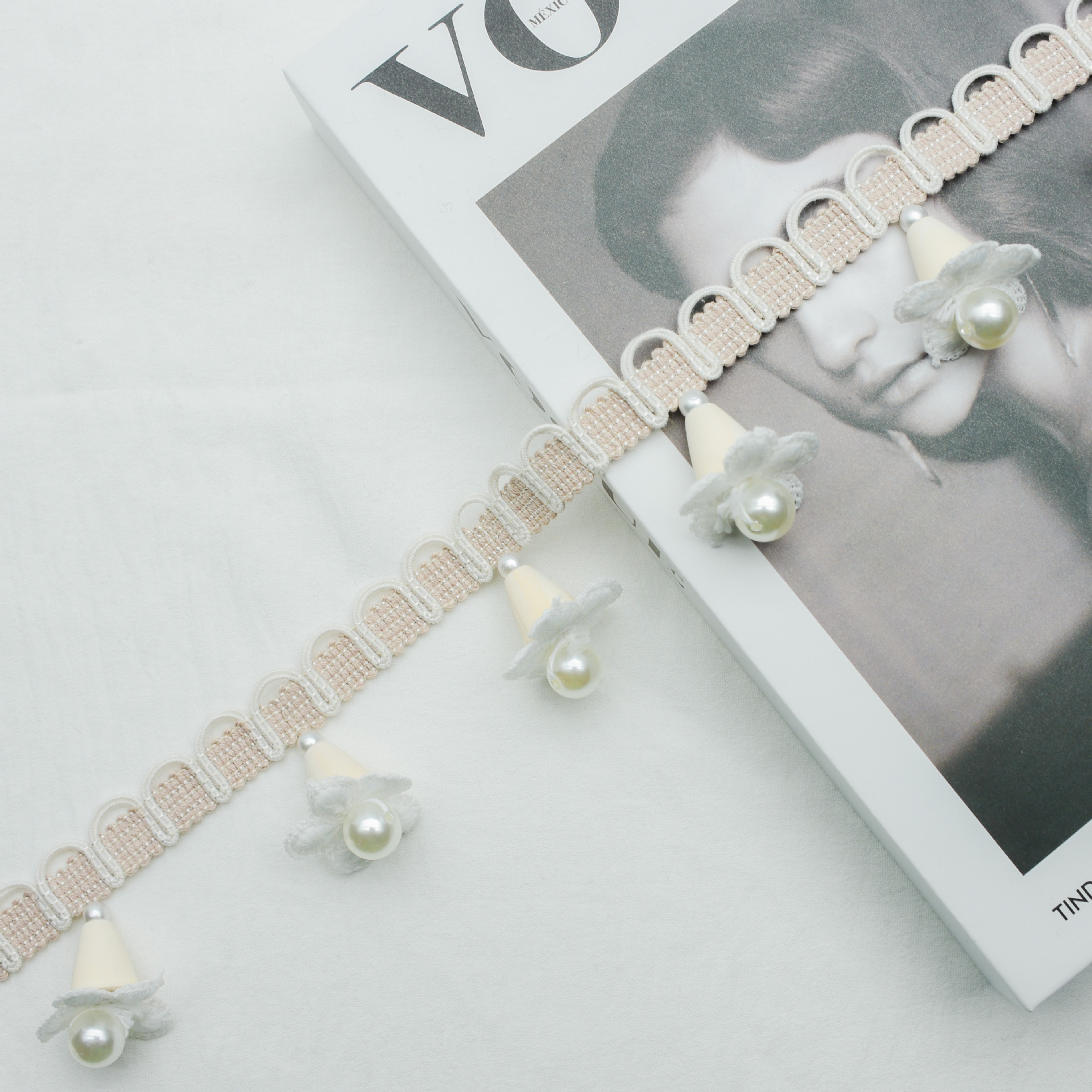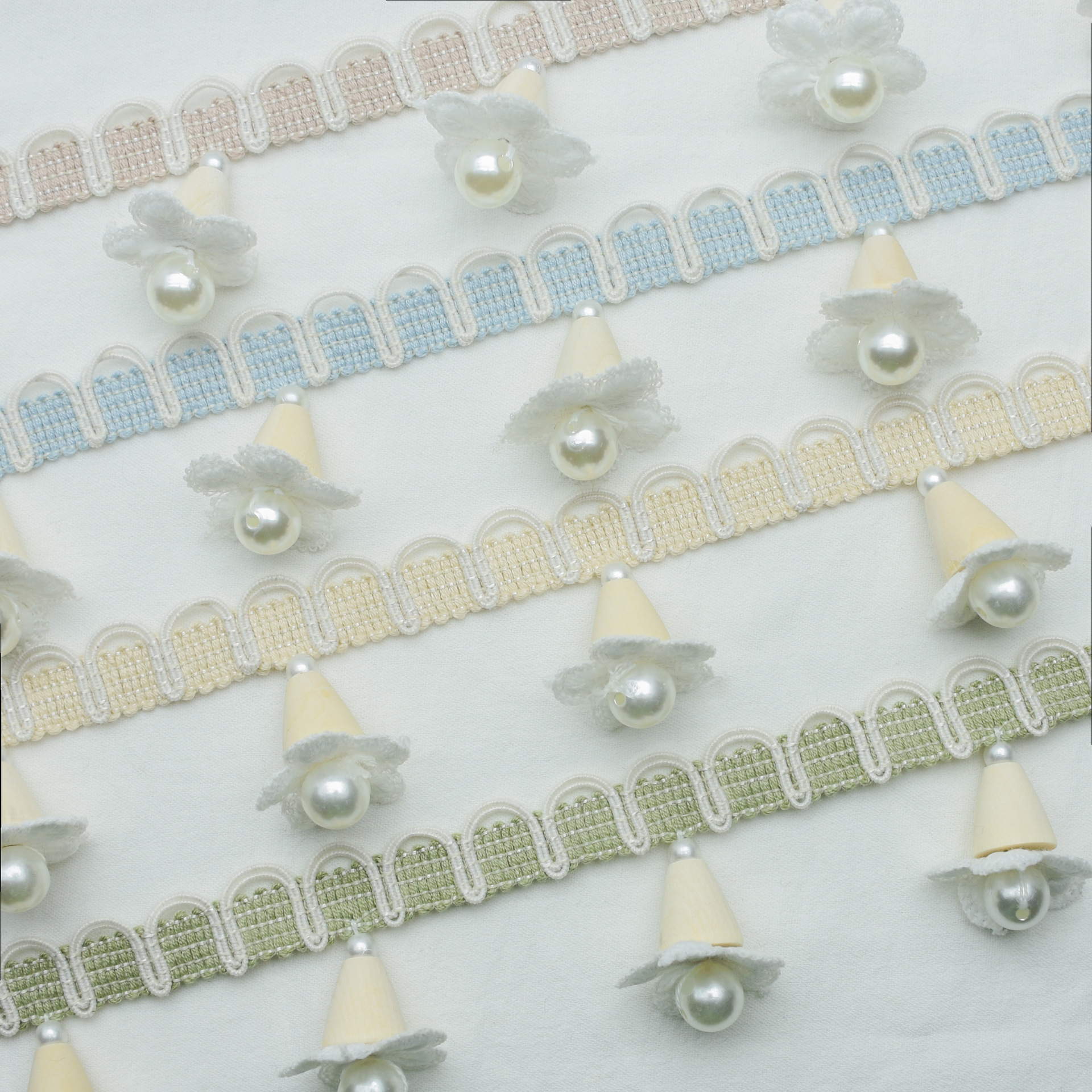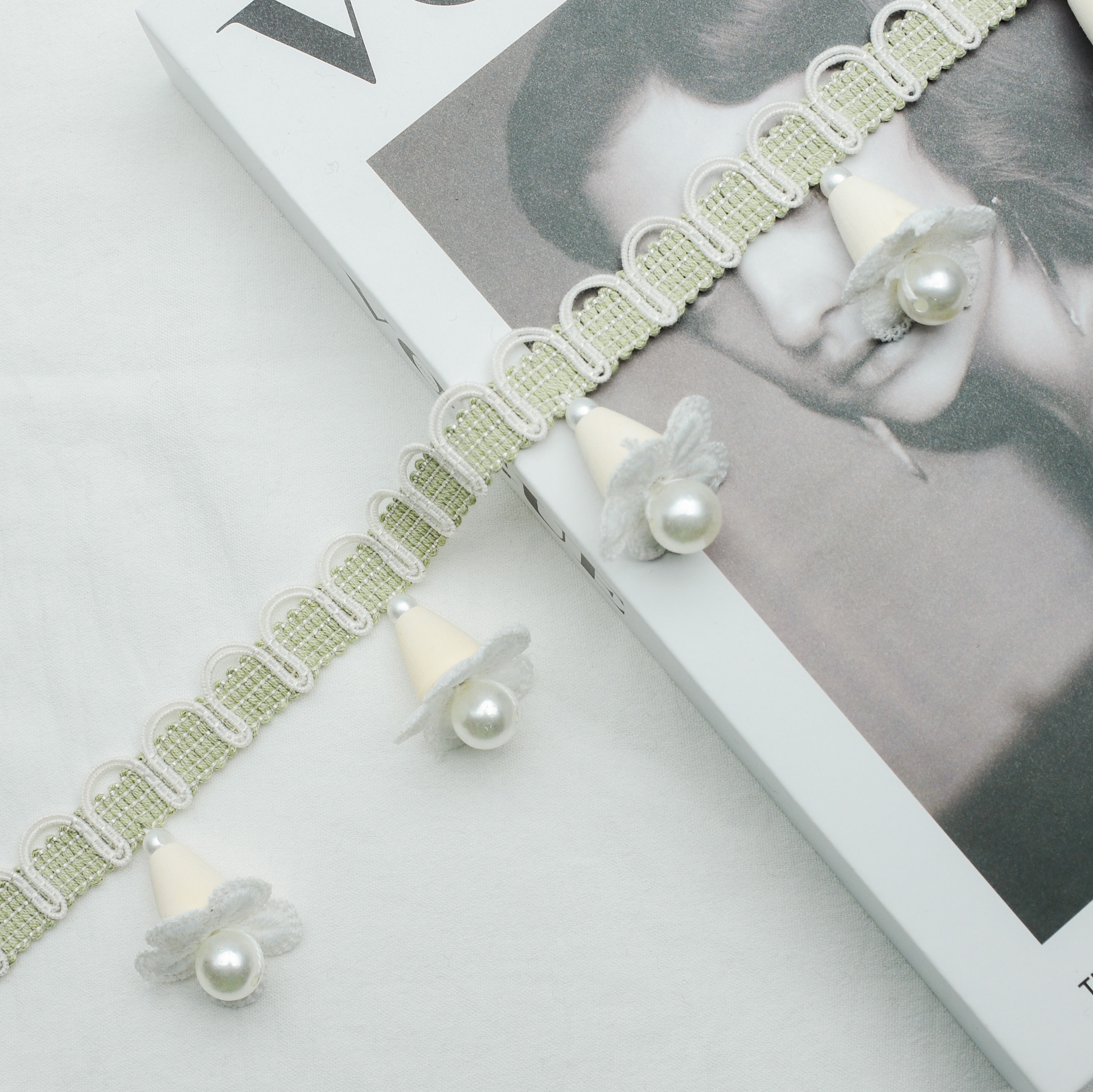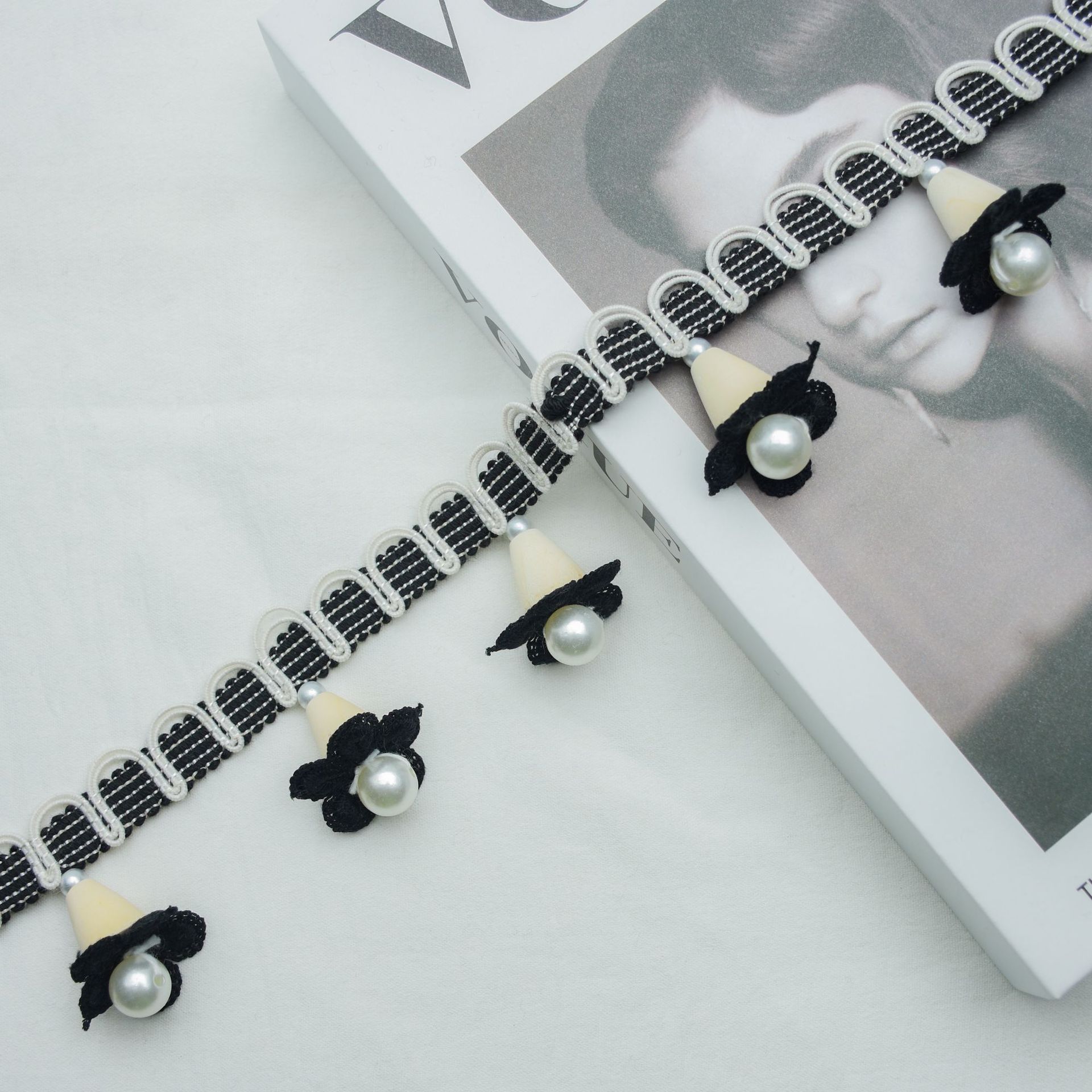 간단한 샤넬 스타일 커튼 레이스 액세서리 진주 단단한 나무 꽃 바느질 의류 베개 옷감 천 측면