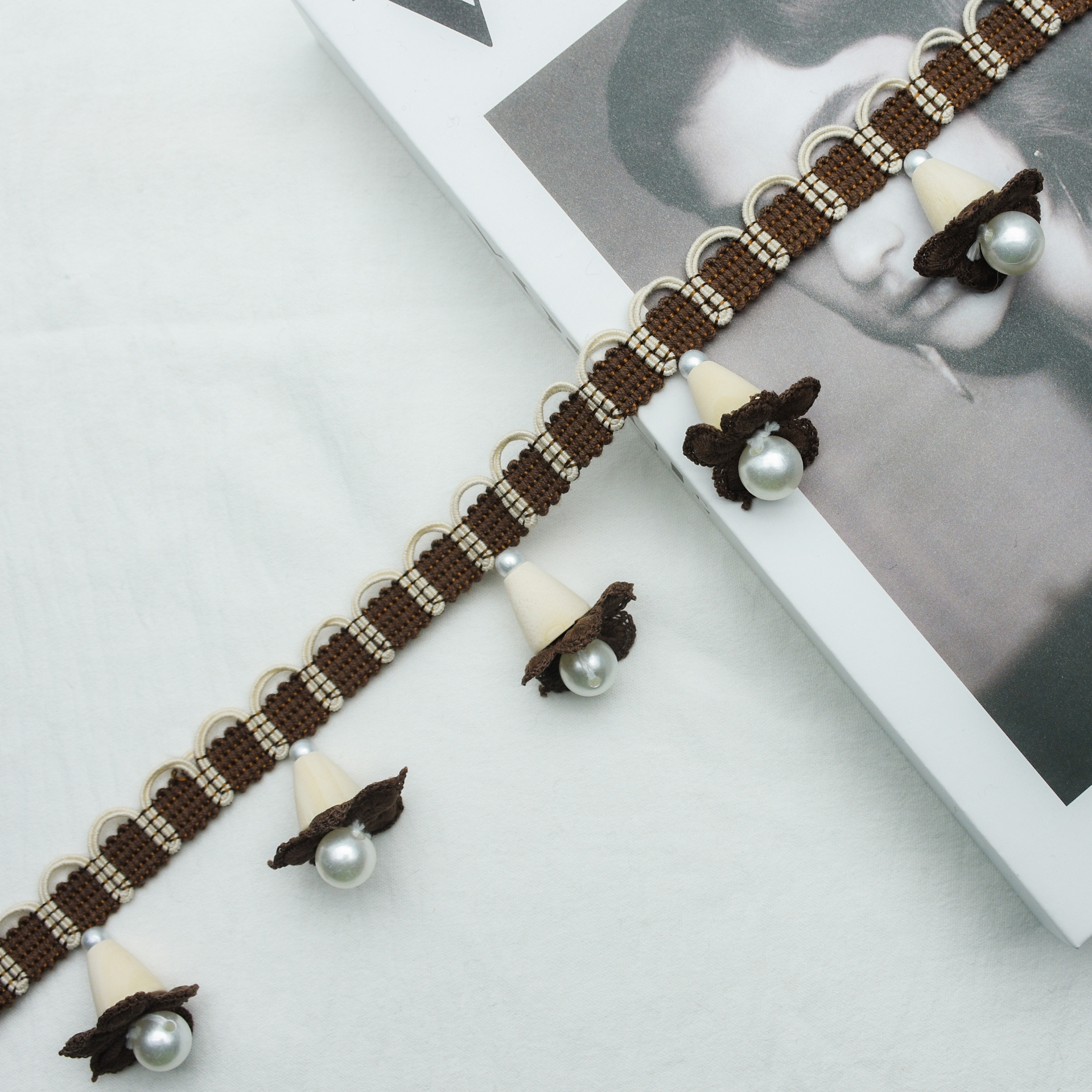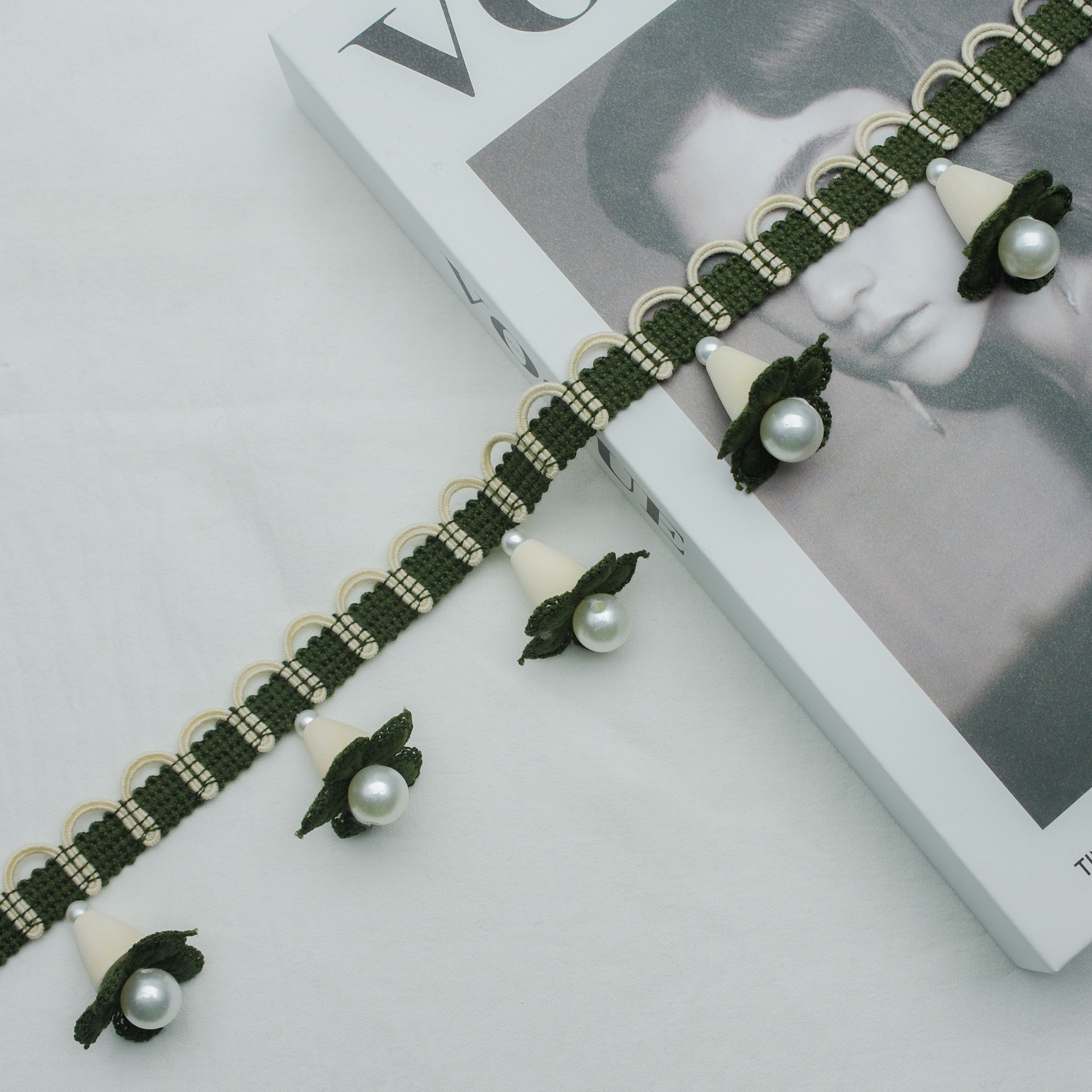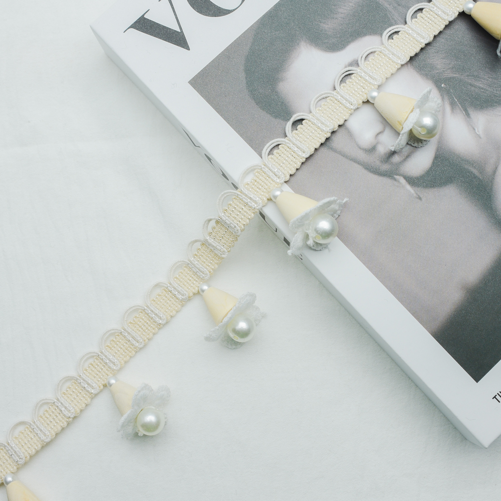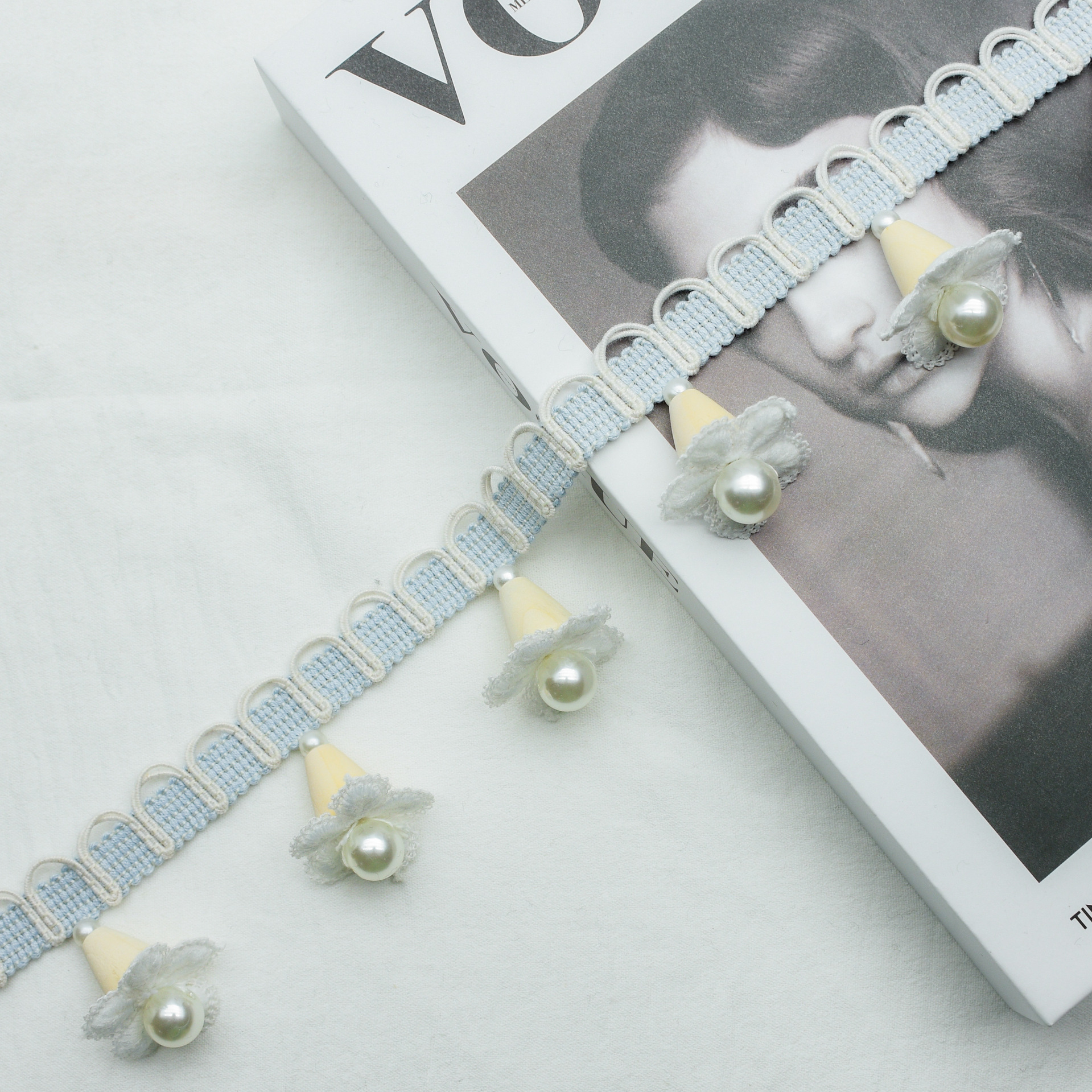 간단한 샤넬 스타일 커튼 레이스 액세서리 진주 단단한 나무 꽃 바느질 의류 베개 옷감 천 측면