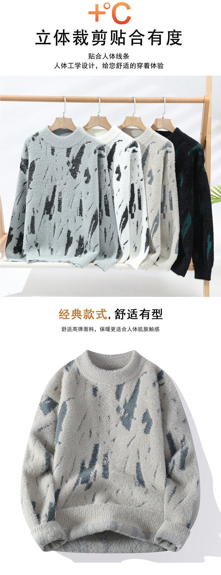 국경 간 헤어 2480 남성 밍크 벨벳 스웨터 트렌드 따뜻한 니트 베이스 셔츠