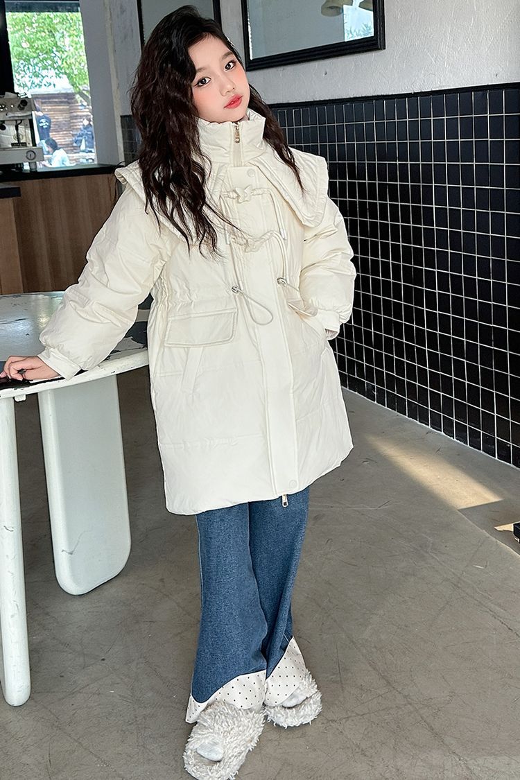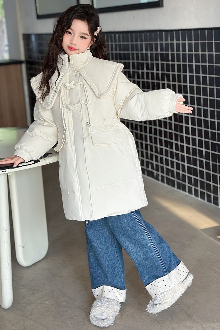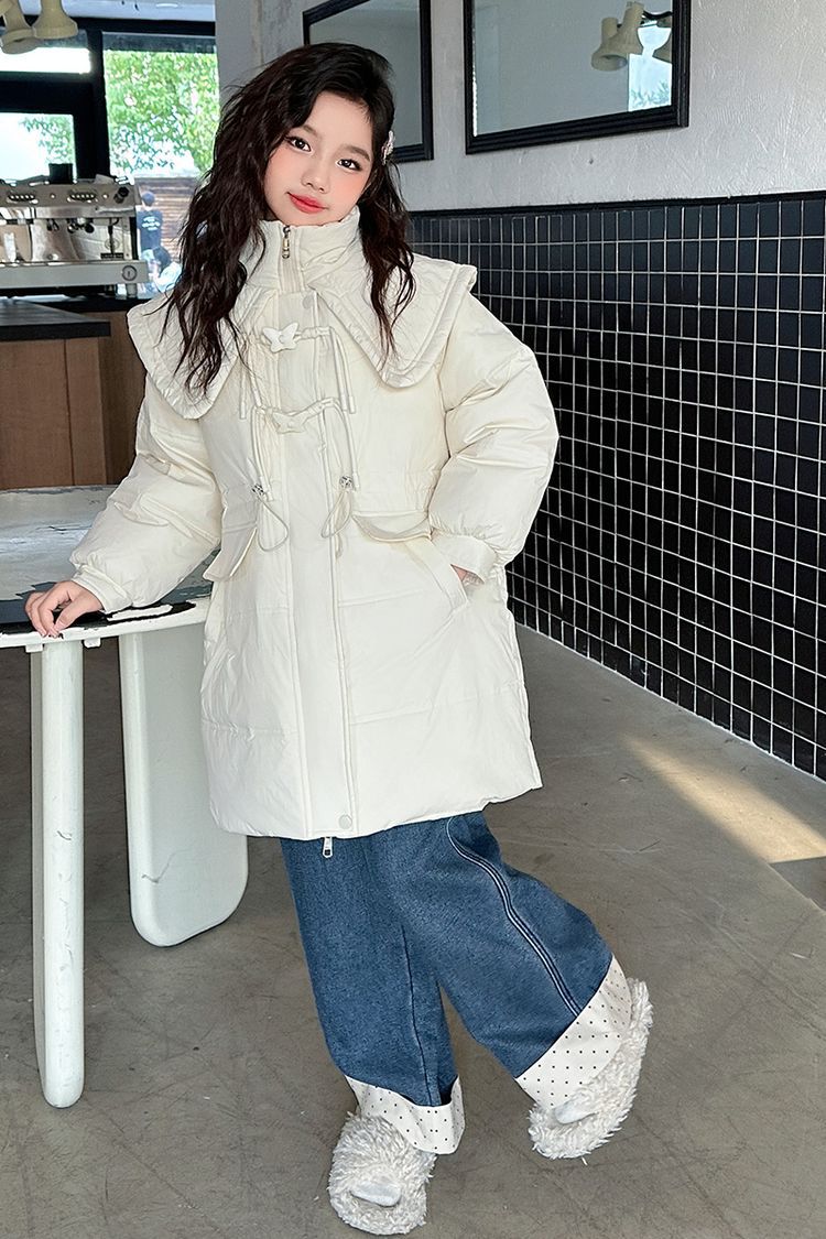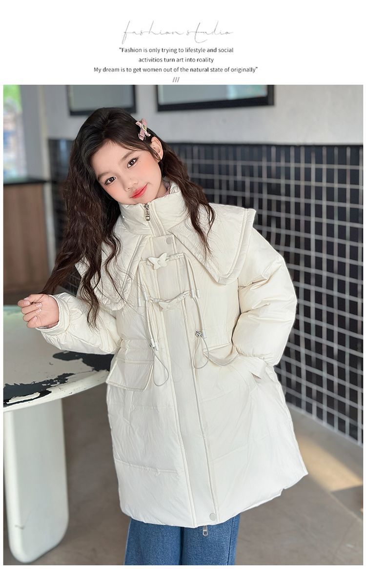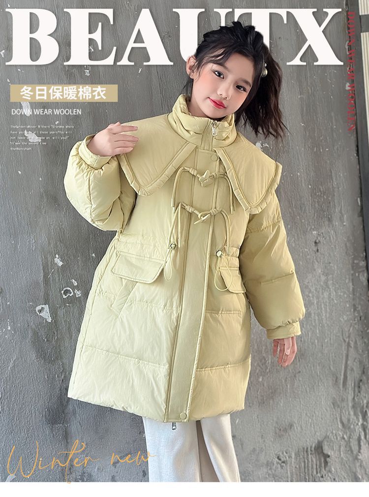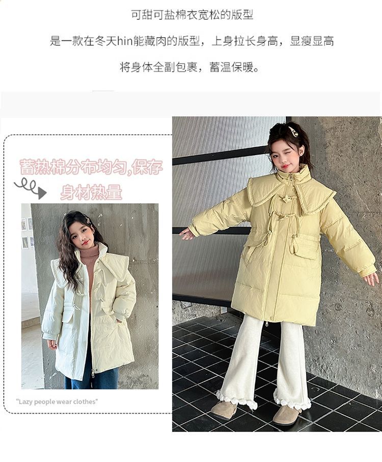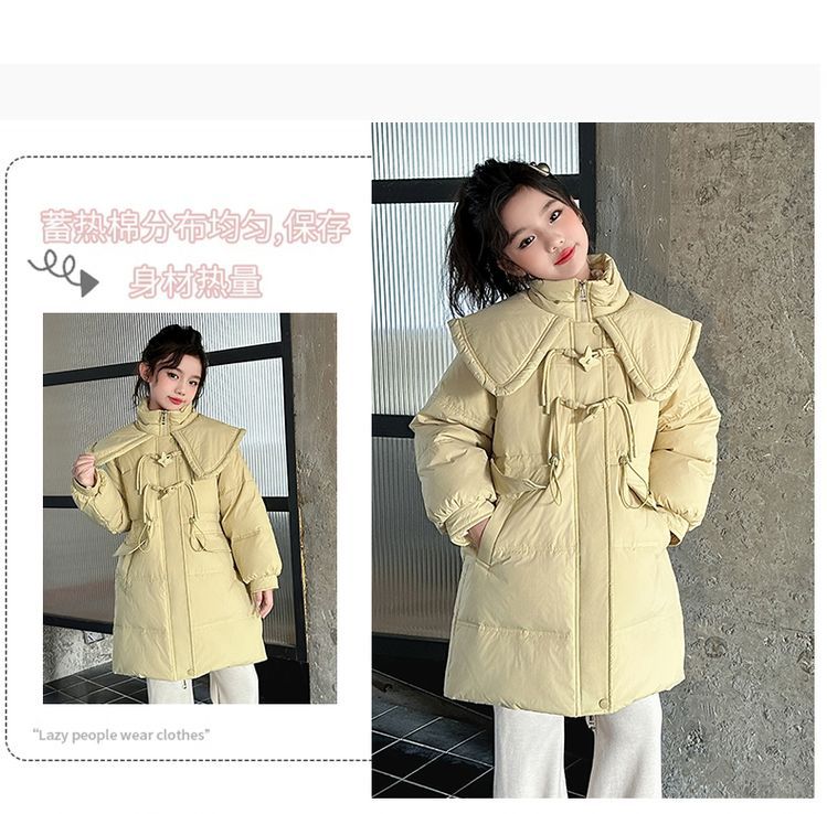 소녀면 패딩 코트 중간 길이 두꺼운 따뜻한 겨울복 소녀의 달콤한 목도리 칼라 웨스턴 스타일 코튼 패딩 코트 어린이 겨울면 패딩 코트스토어 가기