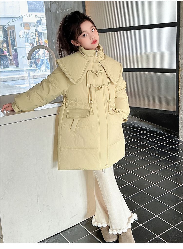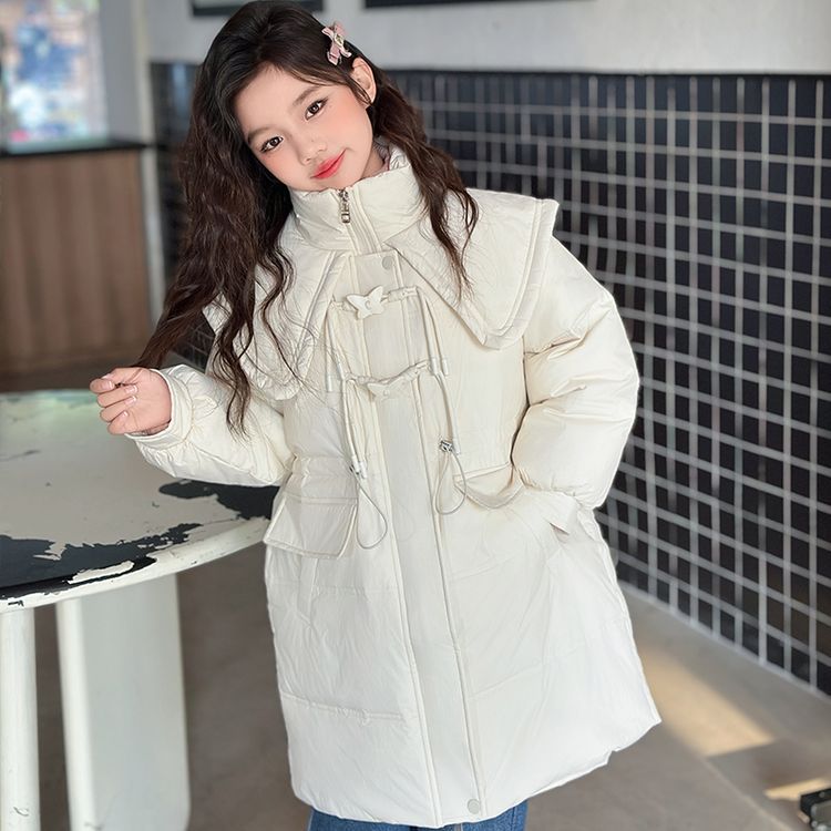 소녀면 패딩 코트 중간 길이 두꺼운 따뜻한 겨울복 소녀의 달콤한 목도리 칼라 웨스턴 스타일 코튼 패딩 코트 어린이 겨울면 패딩 코트