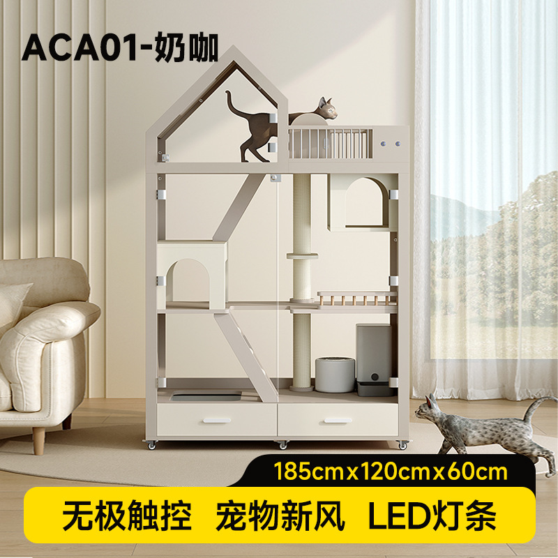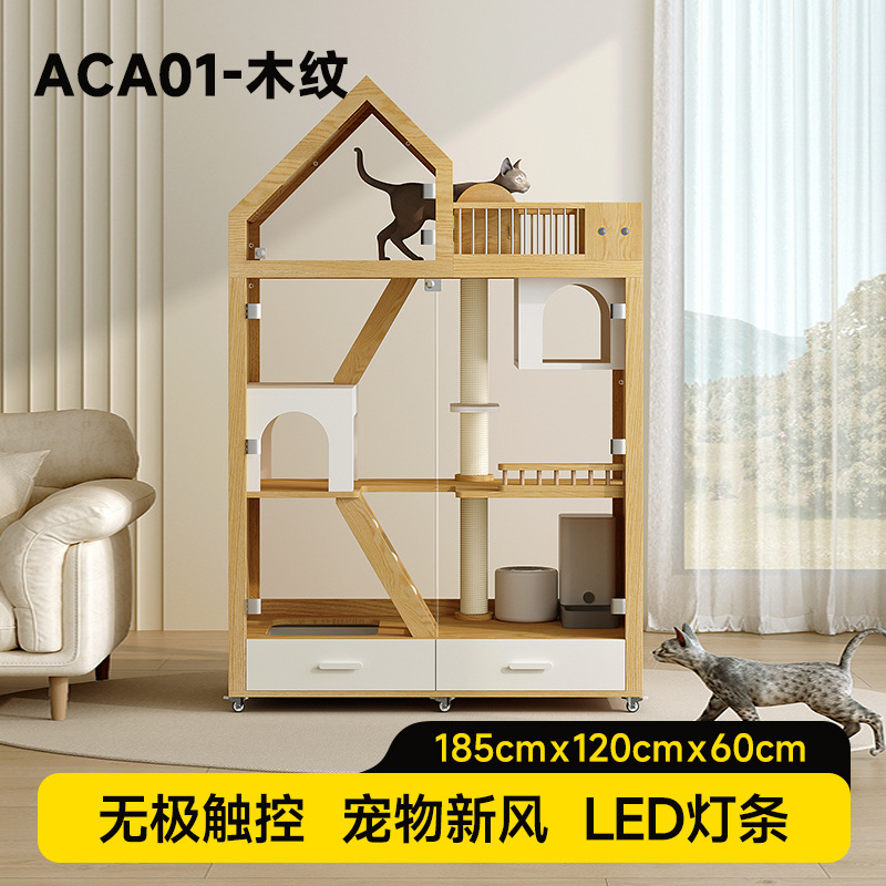 고급 고양이 빌라 파노라마 유리 고양이 캐비닛 단단한 나무 고양이 케이지 고양이 화장실 통합 고양이 둥지 가정용 실내 고양이 집