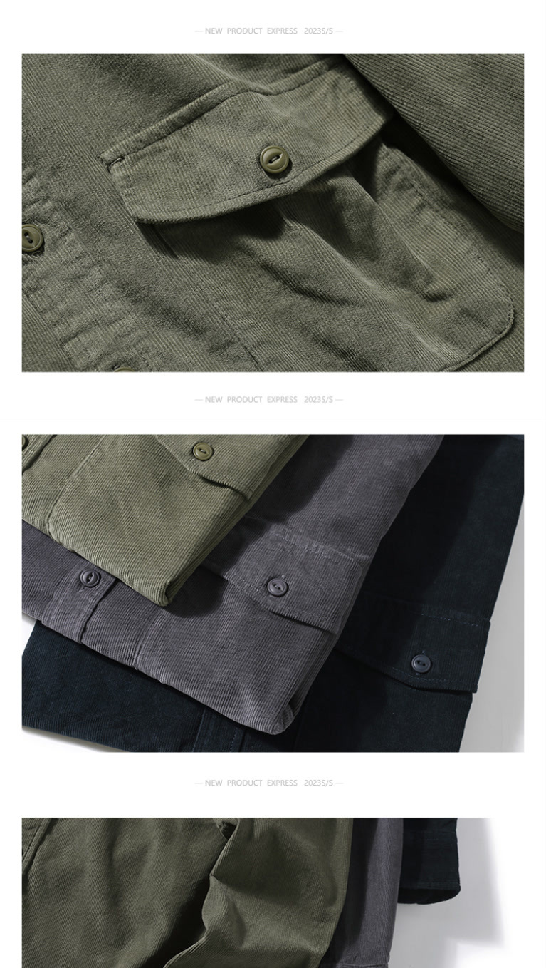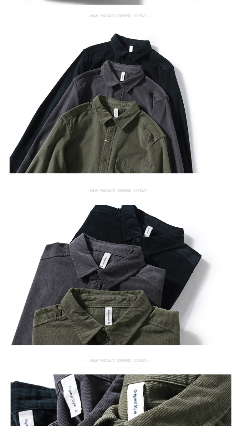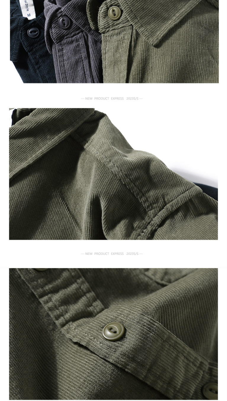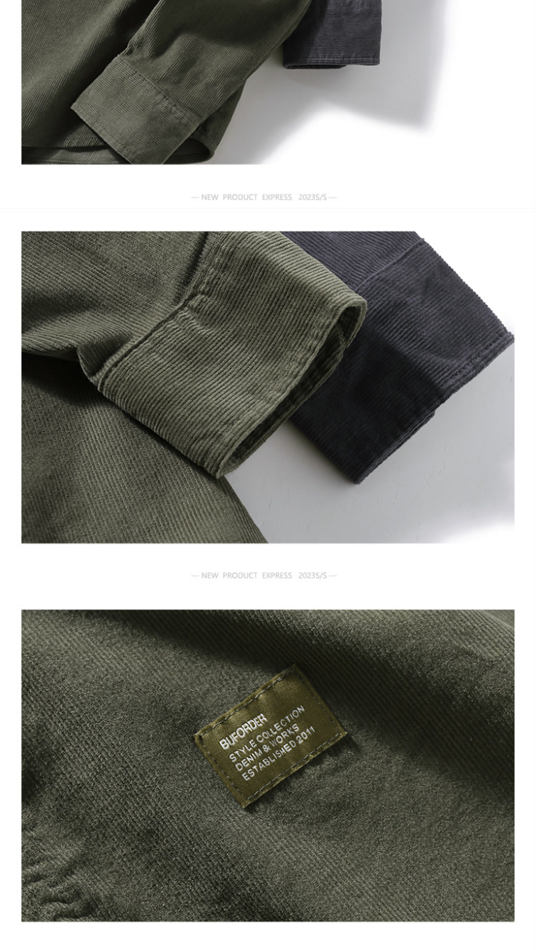 봄과 가을 레트로 미국 캐주얼 툴링 셔츠 남성용 슬림 핏 퓨어 코듀로이 셔츠 청소년 질감 얇은 재킷스토어 가기