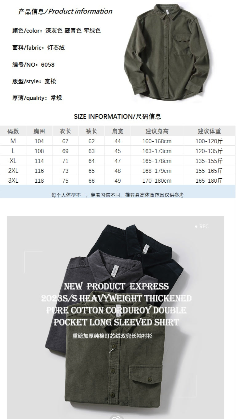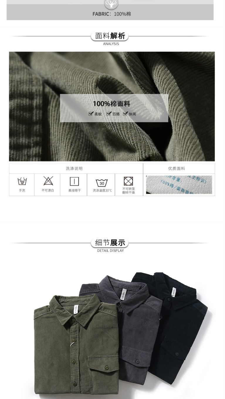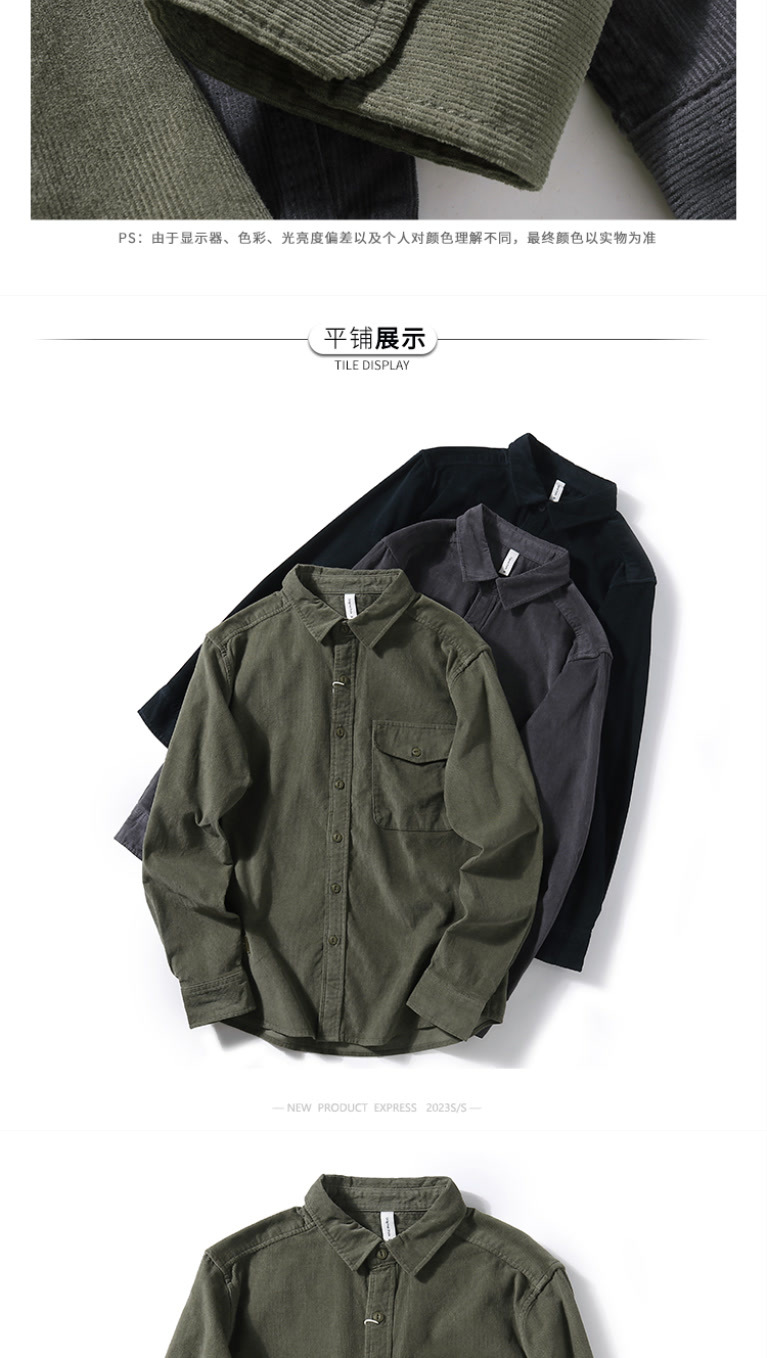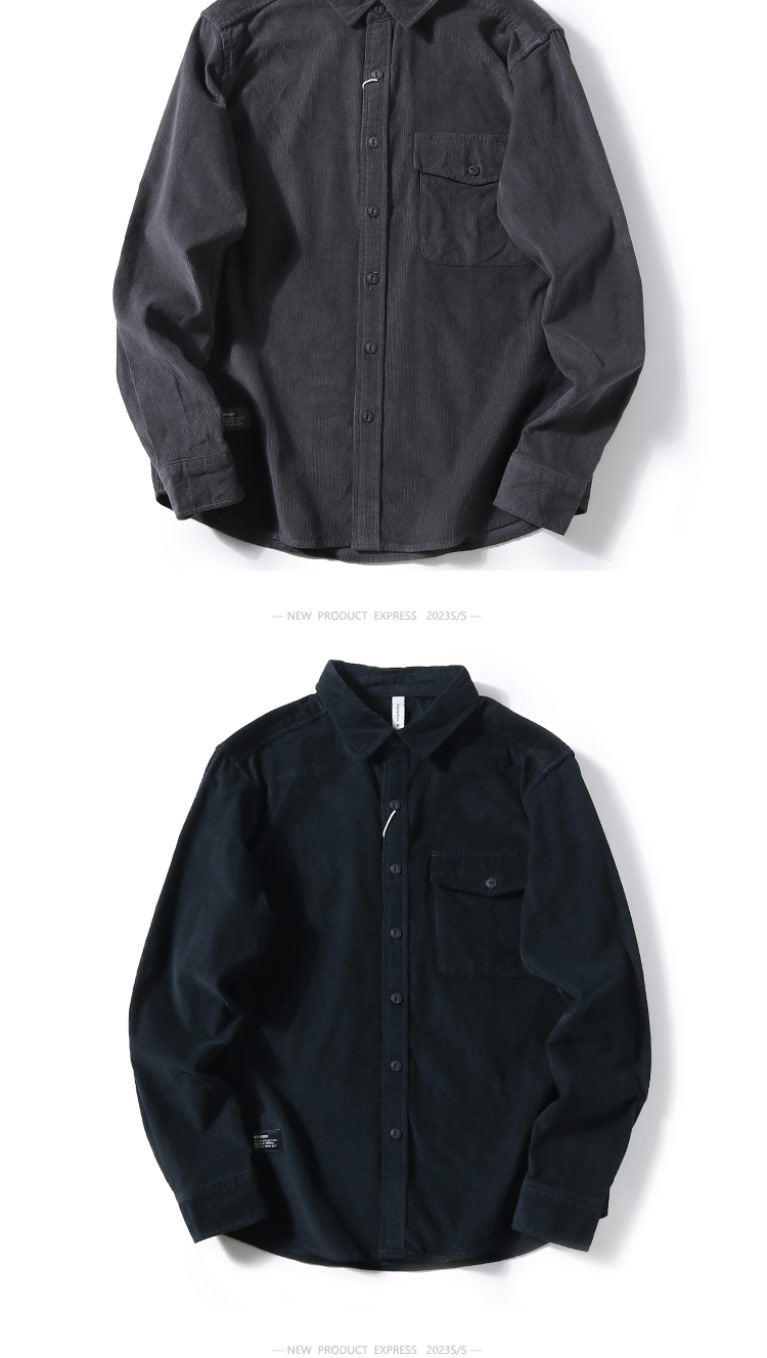 봄과 가을 레트로 미국 캐주얼 툴링 셔츠 남성용 슬림 핏 퓨어 코듀로이 셔츠 청소년 질감 얇은 재킷스토어 가기