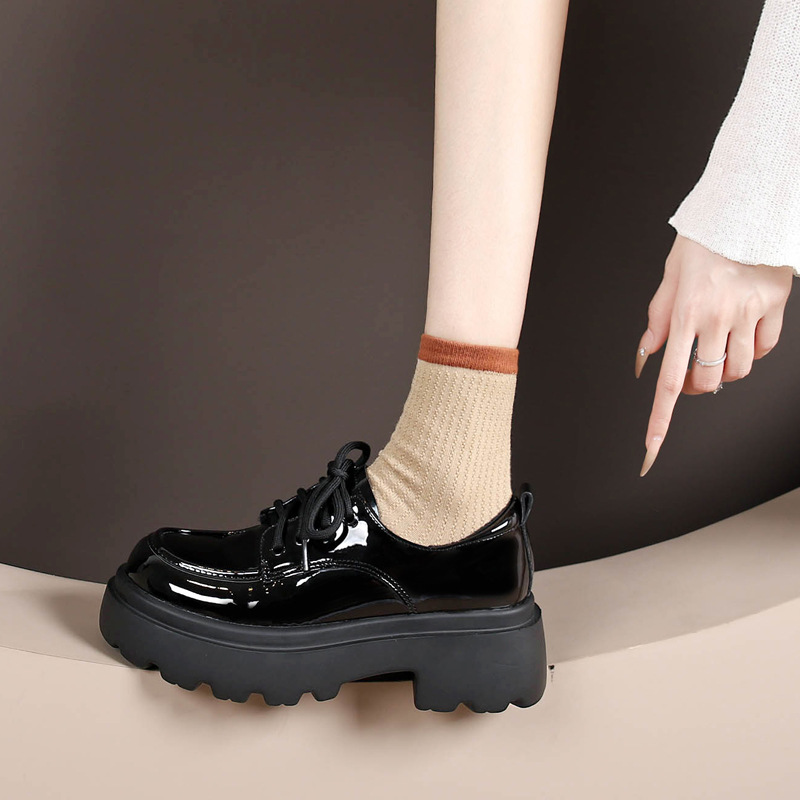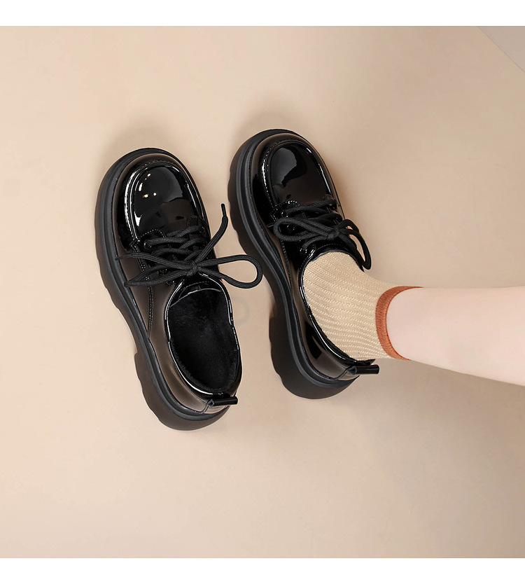 2025년 신상 가을 겨울 여성 로퍼, 벨벳 안감 두꺼운 밑창 에나멜 가죽 슈즈, 영국풍 여성 가죽 신발스토어 가기