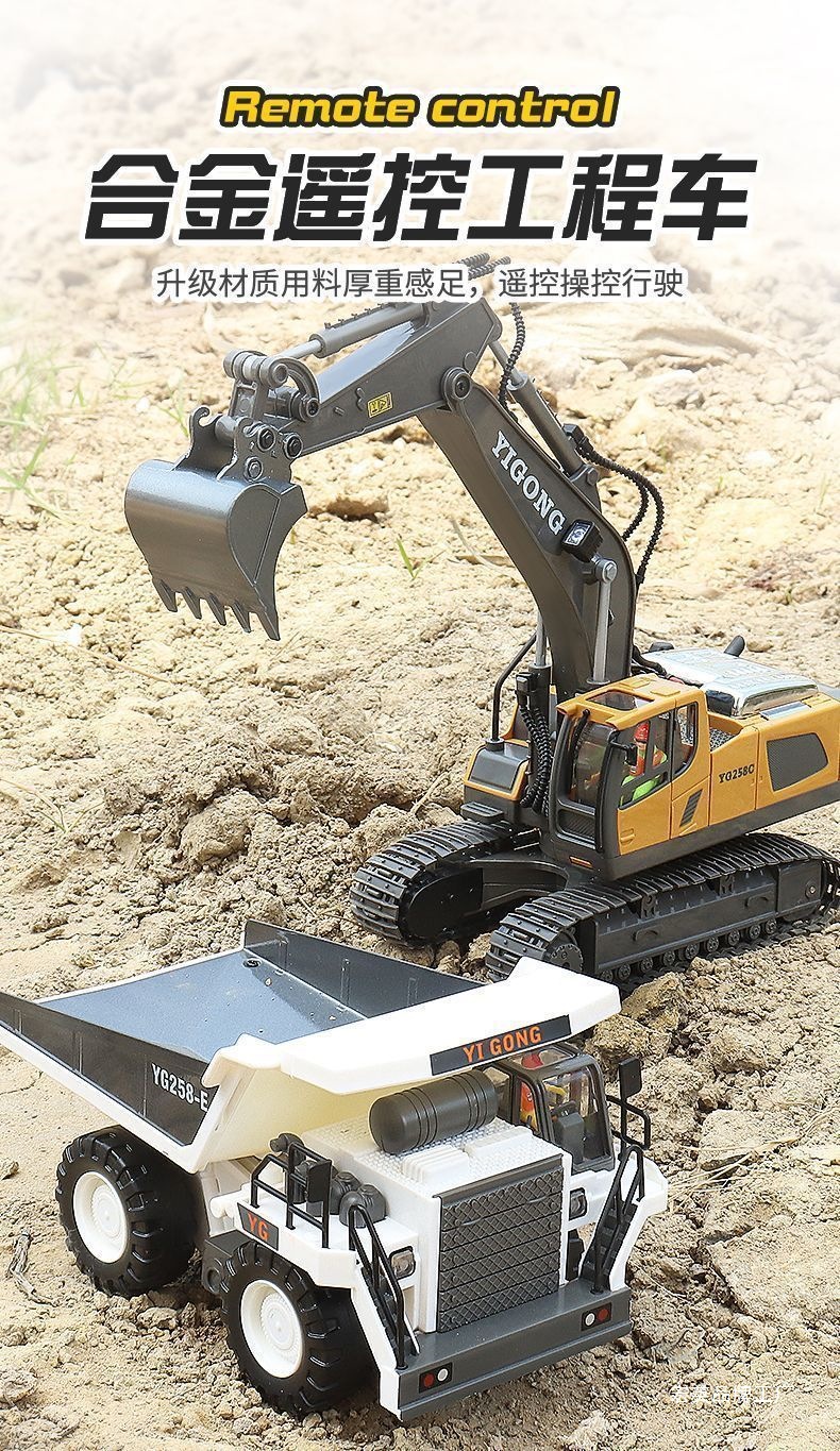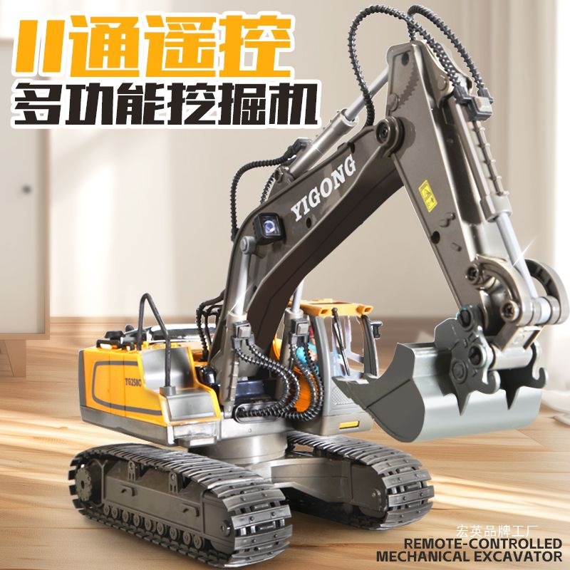 어린이 원격 제어 굴삭기 11 채널 음향 및 조명 음향 효과 합금 굴삭기 대형 원격 제어 굴삭기 소년 선물