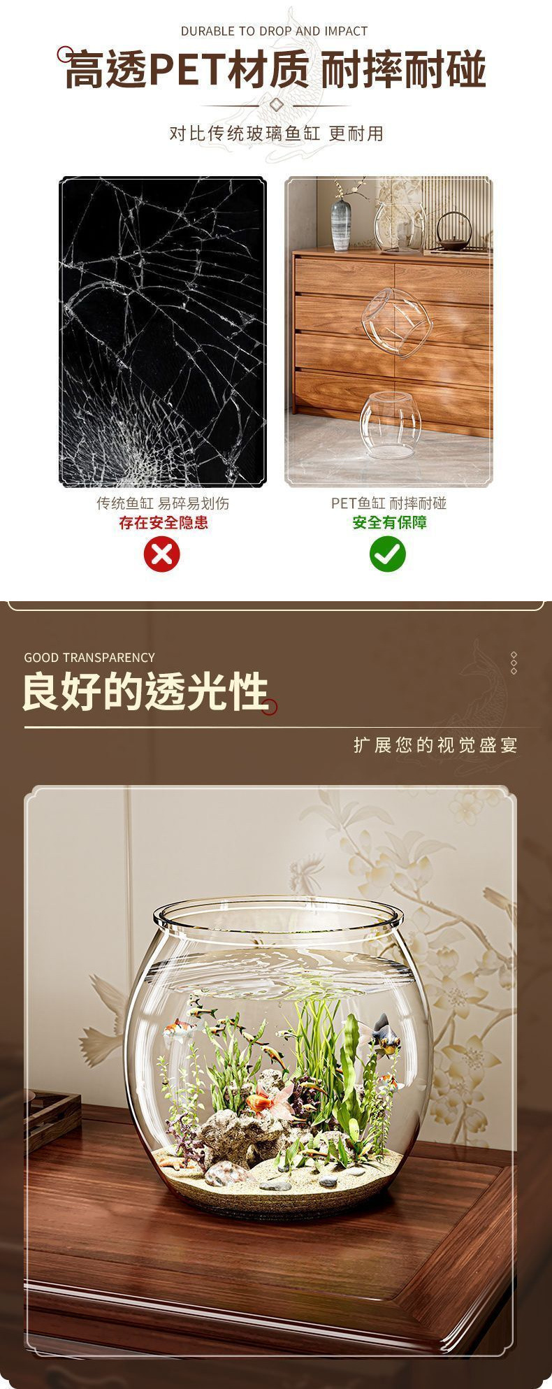 둥근 플라스틱 어항 가정용 거실 원피스 성형 모조 유리 드롭 방지 작은 데스크탑 조경 생태 탱크스토어 가기