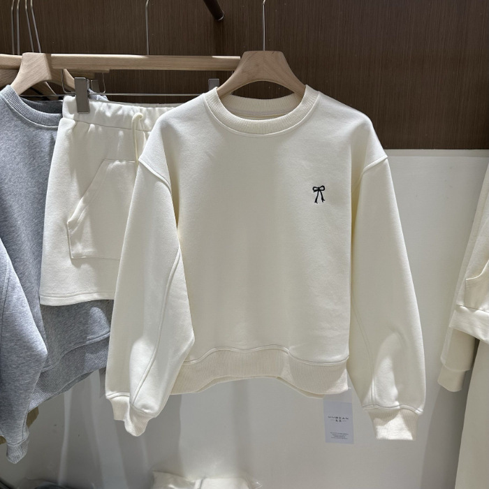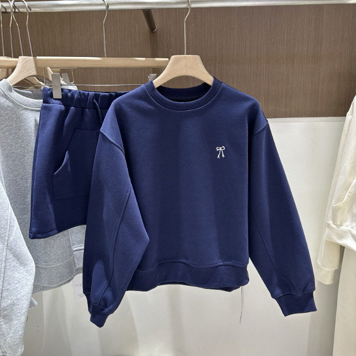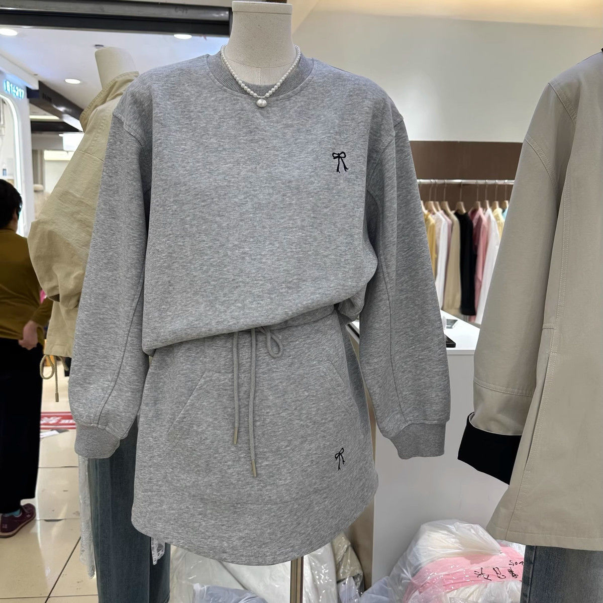 캐주얼 게으른 활 스웨트 스커트 투피스 세트 봄과 가을 느슨한 올매치 연령 감소 외국식 세트 여성스토어 가기