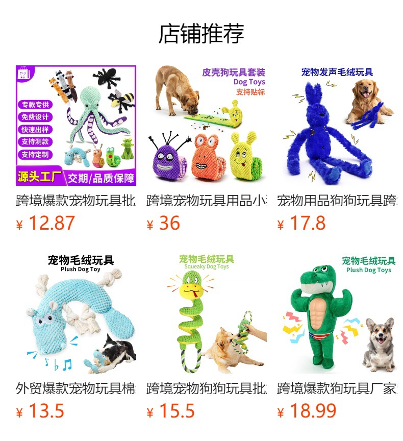 Temu爆款狗玩具 跨境宠物发声毛绒互动磨牙藏食益智宠物玩具新品